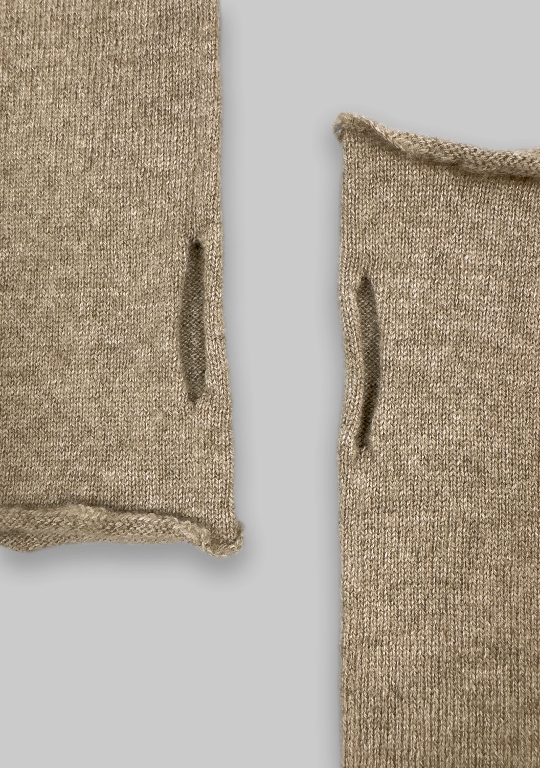 Митенки из 100% кашемира, которые дарят коже ощущение мягкого, деликатного прикосновения. Тонкая, эластичная вязка комфортно охватывает руки, создавая тот самый уют, который не хочется снимать. Продуманное отверстие для большого пальца делает посадку естественной, не нарушая минималистичную линию — всё смотрится чисто, аккуратно и современно.