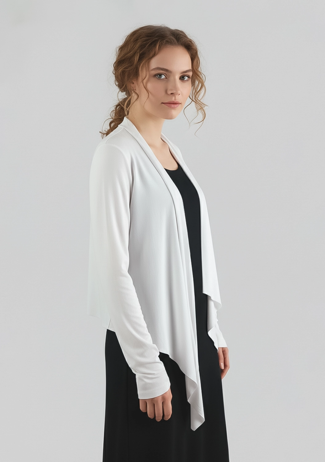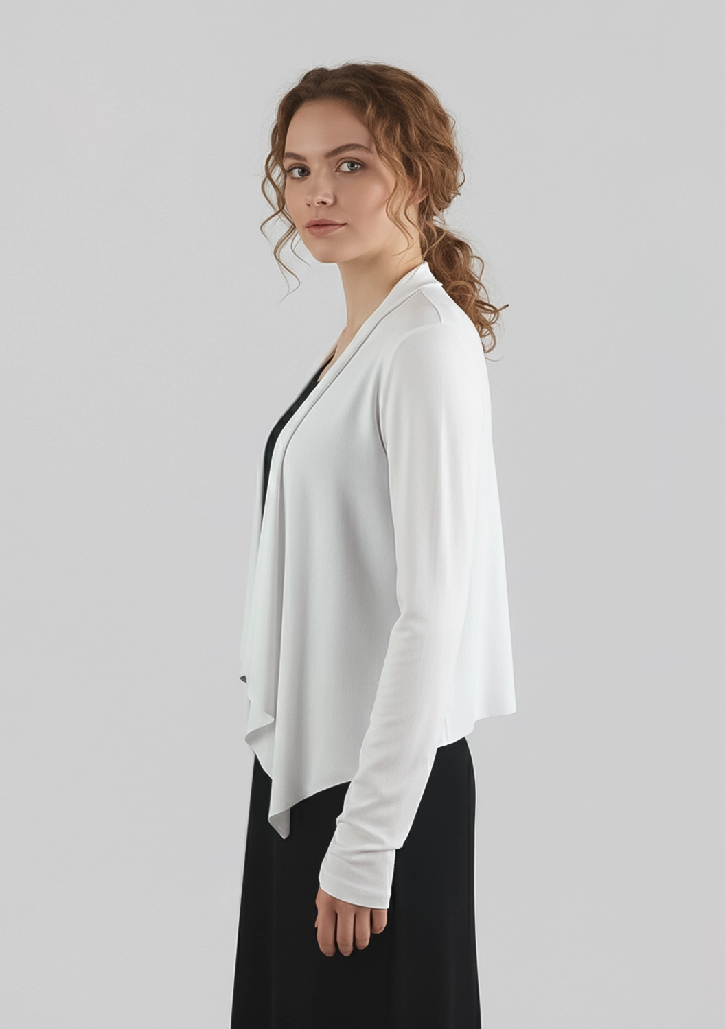 Кардиган от Anett Röstel — это выразительное сочетание комфорта и графичности. Асимметричный крой мягко обтекает силуэт, создавая ощущение легкости и движения. Изюминка — эффектный принт на спине, придающий образу современную архитектурность. Мягкий, струящийся материал приятно ложится на тело, делая каждое прикосновение особенно приятным. Идеальный выбор для тех, кто ценит минимализм с характером.