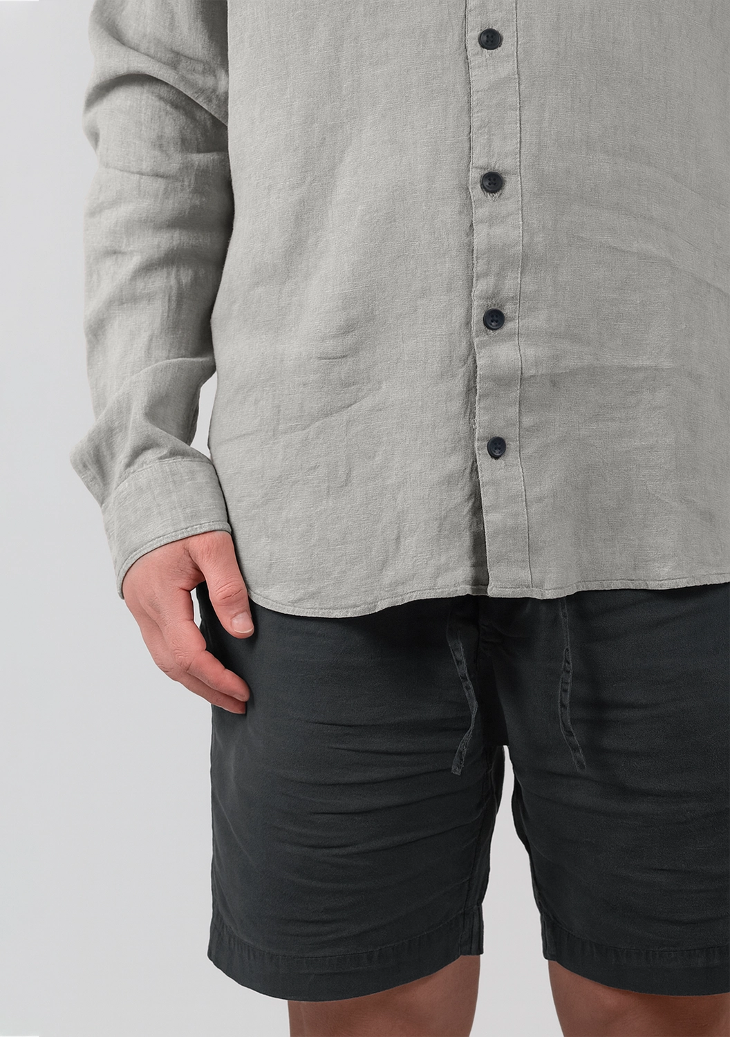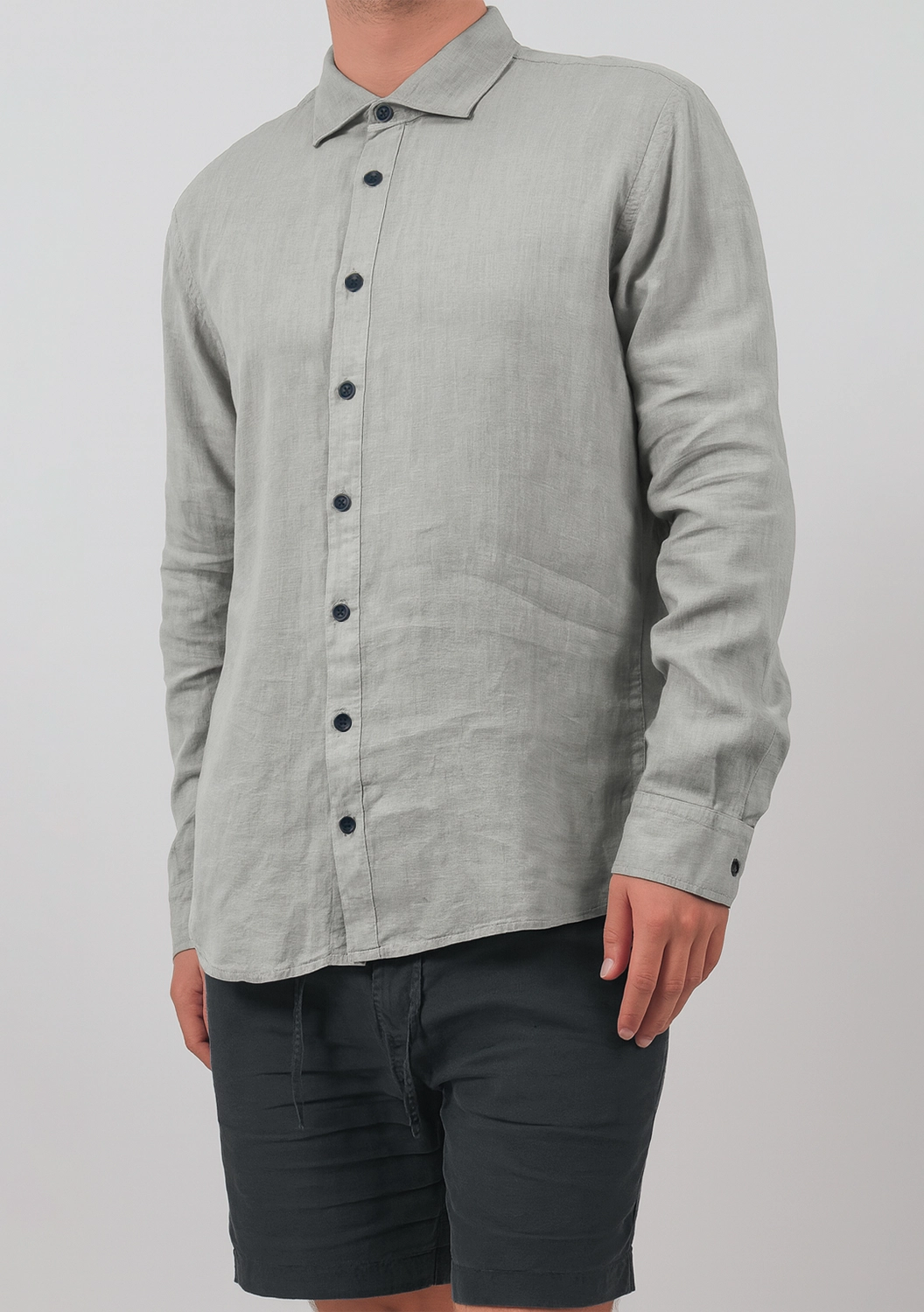Классическая рубашка из 100% льна — образец сдержанного стиля и тактильного комфорта. Натуральная ткань приятно охлаждает кожу, а прямой крой с контрастными пуговицами придаёт образу строгость с налётом непринуждённости. Универсальный элемент гардероба для тёплого времени года — подходит как для повседневных образов, так и для более формальных сочетаний.