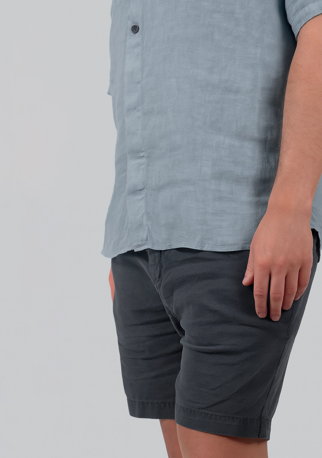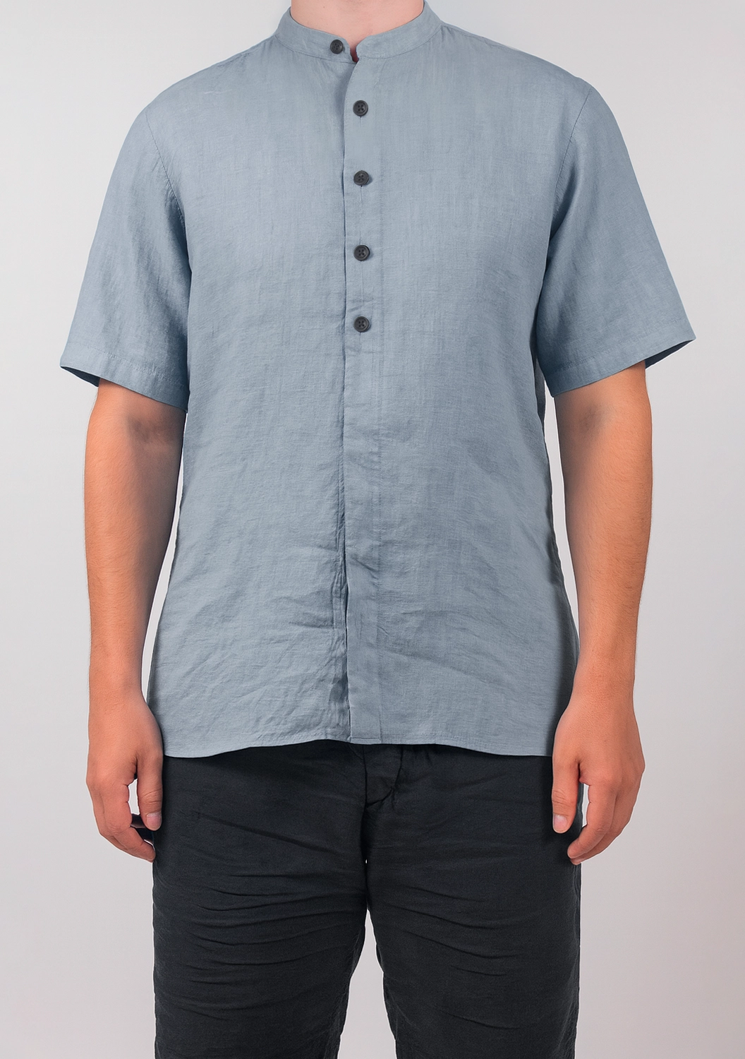 Рубашка из 100% льна — воплощение тактильного комфорта и сдержанного стиля. Мягкая, дышащая ткань дарит ощущение прохлады даже в жаркий день, а фактурная поверхность приятно ощущается на коже. Минималистичный дизайн с короткими рукавами и воротником-стойкой подчёркивает современный характер изделия, сохраняя при этом утонченную элегантность. Потайная планка и аккуратные складки на спинке придают образу продуманную небрежность. Идеальный выбор для тех, кто ценит эстетику в каждой детали.
