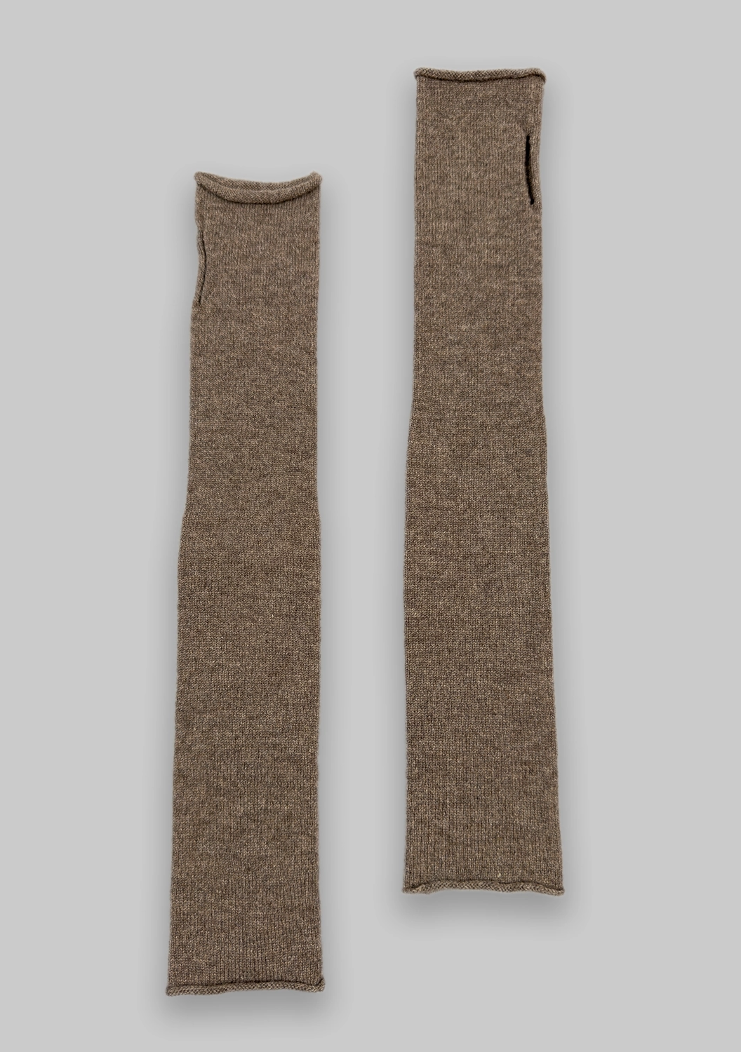 Тонкая, эластичная вязка комфортно охватывает руки, создавая тот самый уют, который не хочется снимать. Продуманное отверстие для большого пальца делает посадку естественной, не нарушая минималистичную линию — всё смотрится чисто, аккуратно и современно.