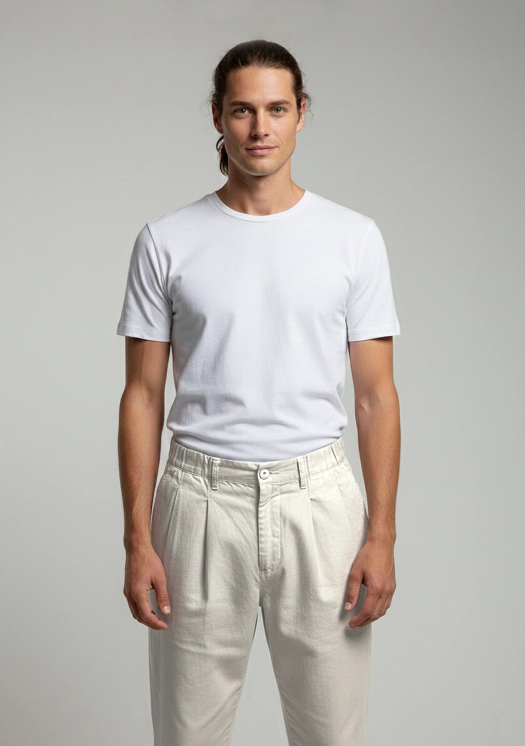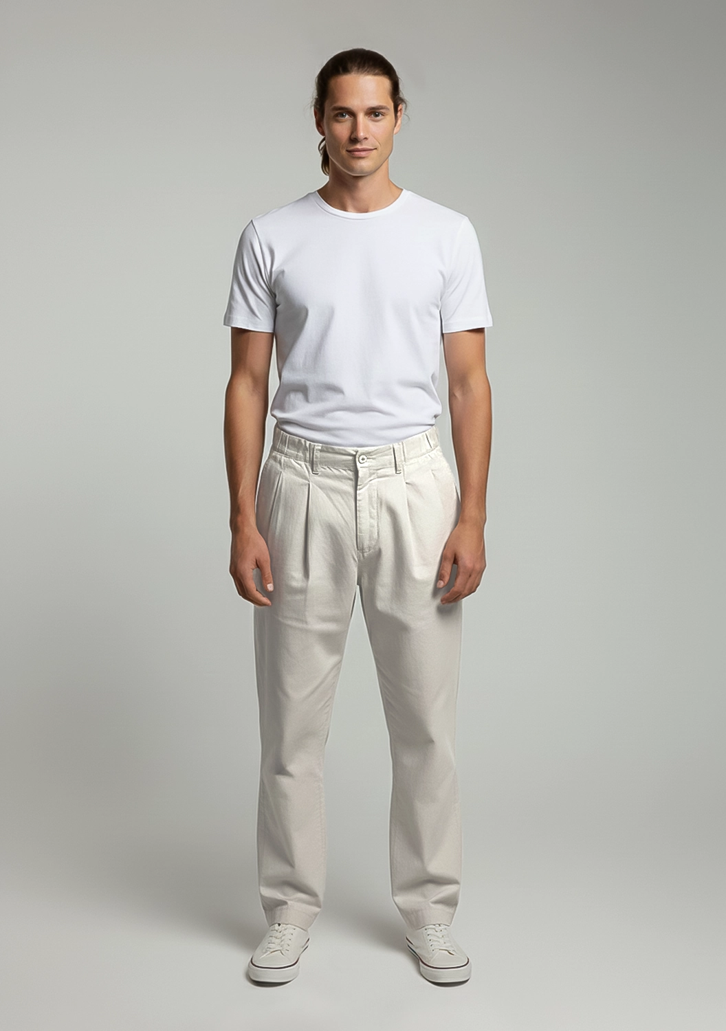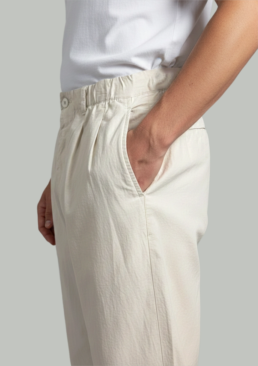 Свободные брюки из хлопка с комфортной посадкой на резинке. Мягкий, дышащий материал с легкой текстурой дарит приятные ощущения на коже. Классические складки спереди добавляют объема, а универсальный оттенок легко сочетается с другими вещами гардероба.