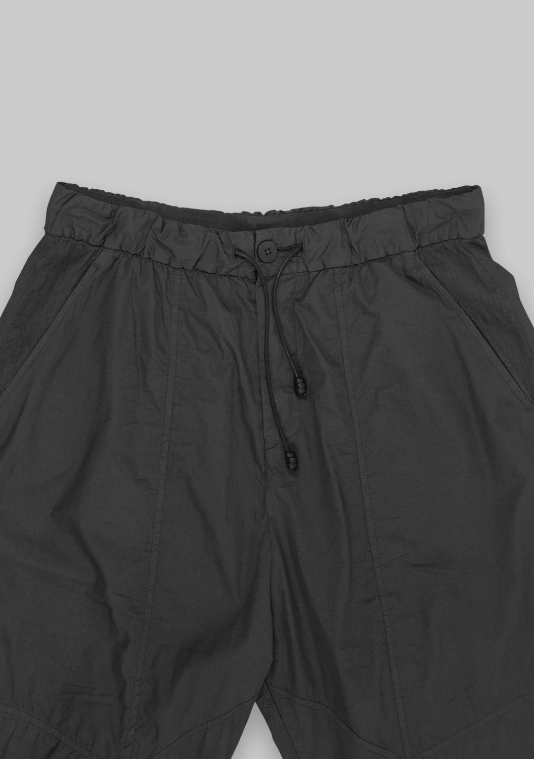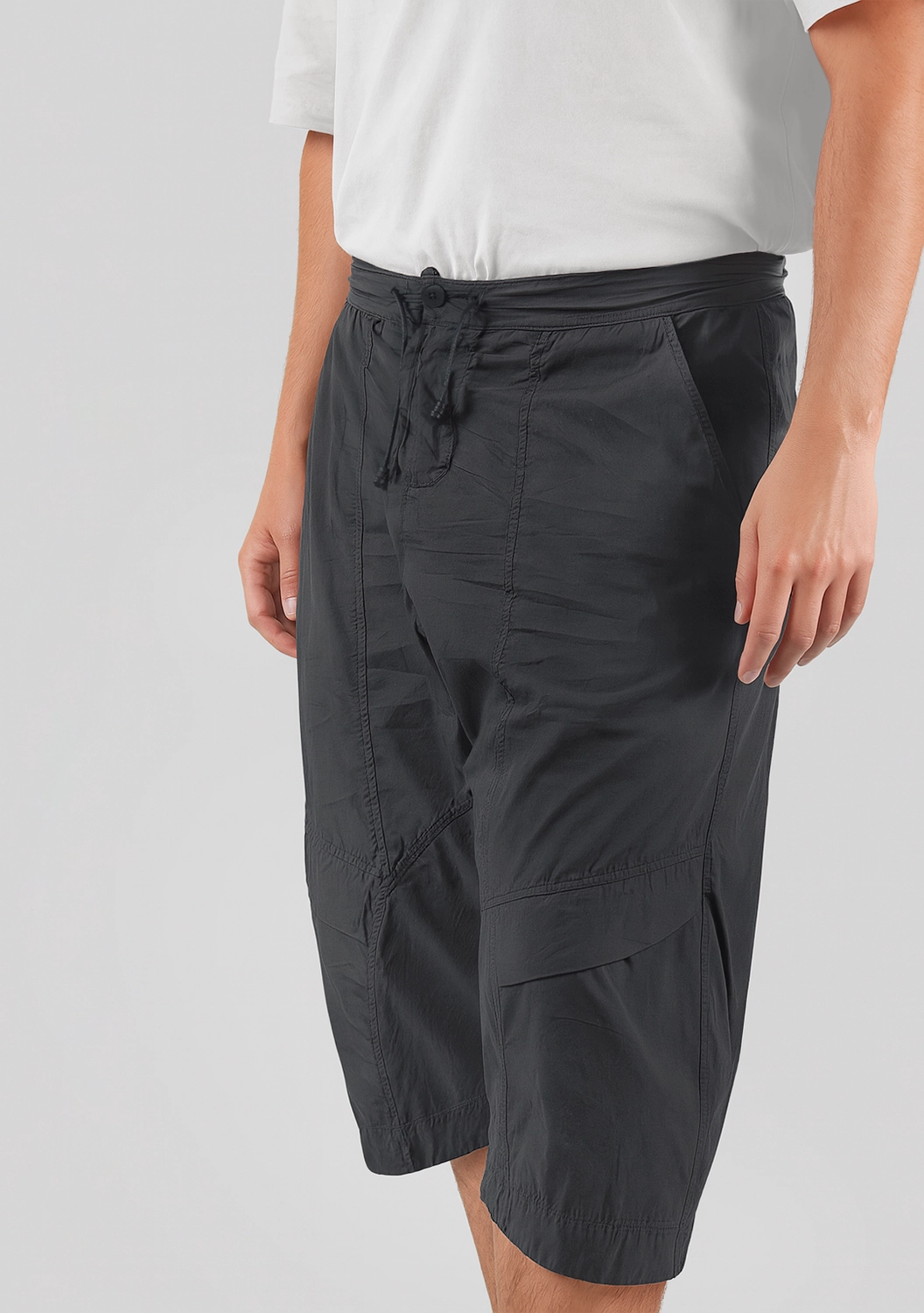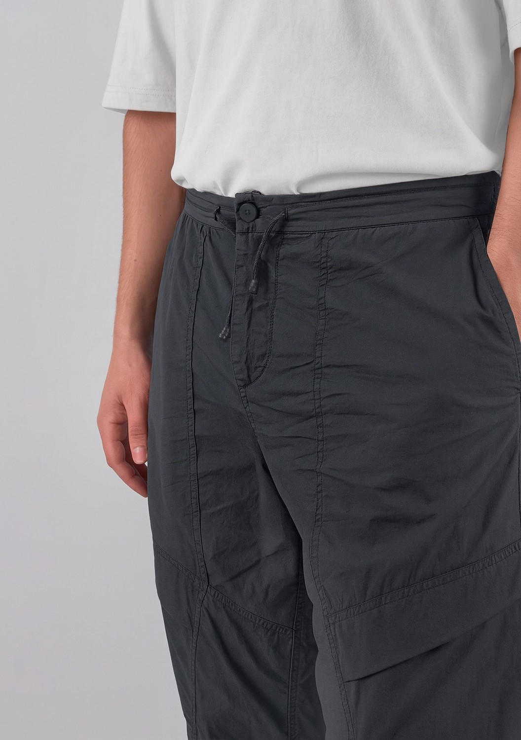 Укороченные брюки-карго оверсайз из хлопковой парашютной ткани — идеальный выбор для тех, кто ищет баланс между комфортом и модным дизайном. Оверсайз крой с контрастными вставками создает современный образ, а эластичный пояс с вощеным шнурком и имитацией застежки на пуговицы обеспечивает удобство. Косые передние карманы, боковые карманы с клапанами и задние карманы добавляют функциональности.