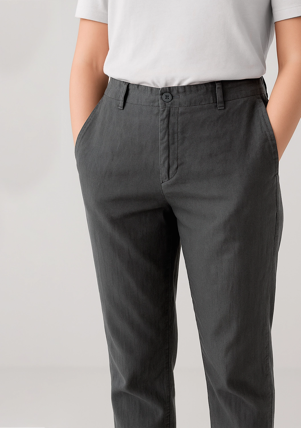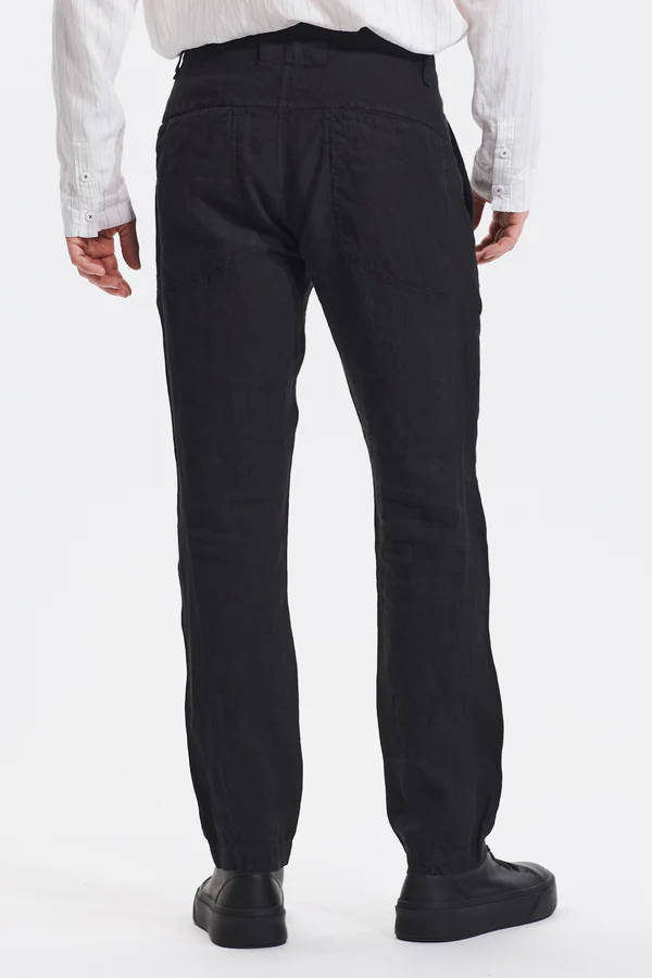 Льняные брюки прямого кроя — идеальное сочетание стиля и практичности. Окрашенные после пошива, они обладают уникальным оттенком, который добавляет индивидуальности. Петли для ремня и застежка на пуговицу обеспечивают классическую посадку, а боковые карманы в швах и задние карманы с простроченными деталями вдоль кокетки подчеркивают утонченный дизайн.