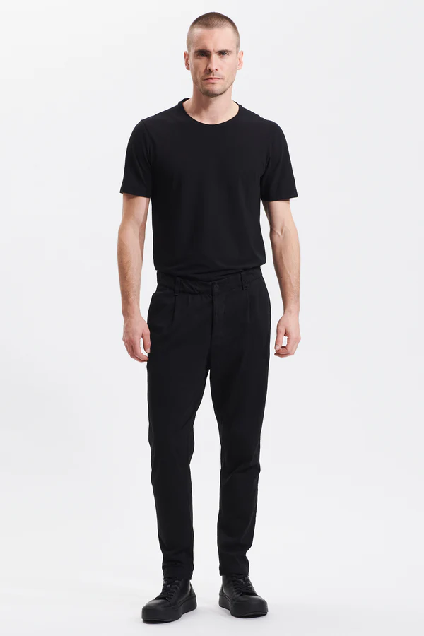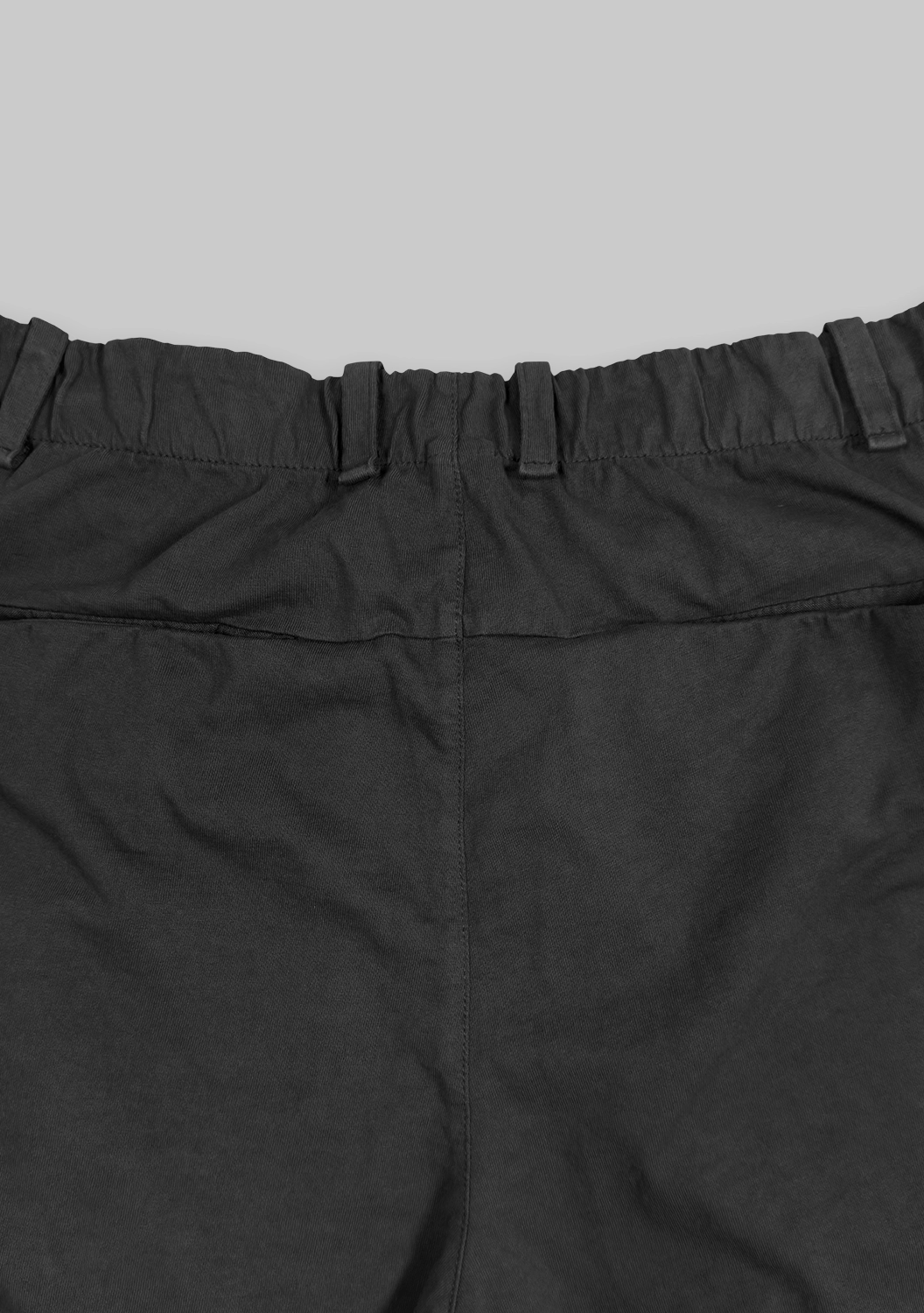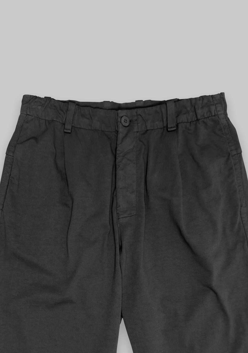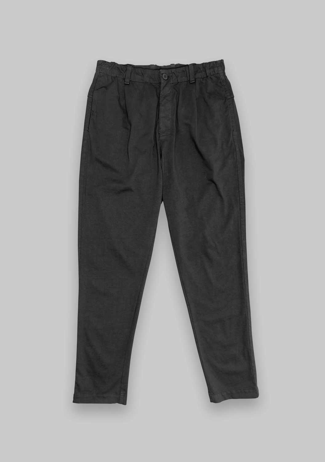 Брюки из плотного хлопкового трикотажа с льняными вставками — идеальный выбор для тех, кто ценит удобство и стиль. Свободный крой и эластичный пояс обеспечивают комфорт на весь день, а карманы в швах и небольшие складки спереди добавляют элегантности. Имитация застежки на пуговицы и цепная строчка подчеркивают уникальный дизайн. Окрашены после пошива для эксклюзивного оттенка.