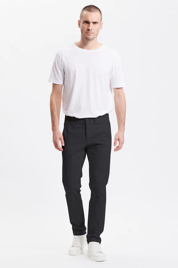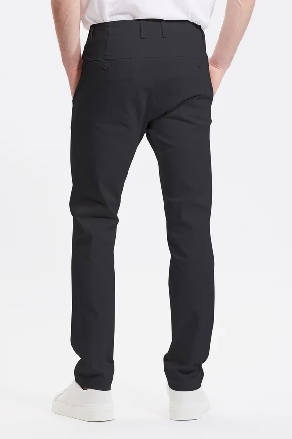 Эластичные брюки прямого кроя из хлопка сочетают в себе стиль и удобство. Окрашенные после пошива, они обладают уникальным оттенком, который добавляет индивидуальности. Косые передние карманы и задние карманы с обтачкой и пуговицами обеспечивают практичность и элегантность. Застежка на пуговицы завершает классический дизайн, идеально подходящий для любого случая.