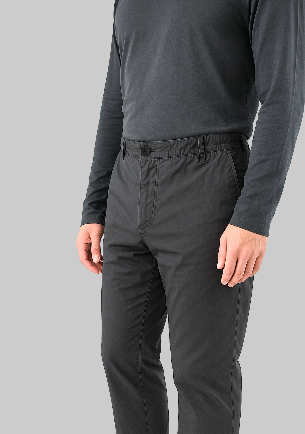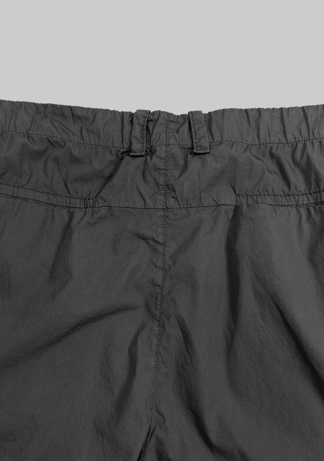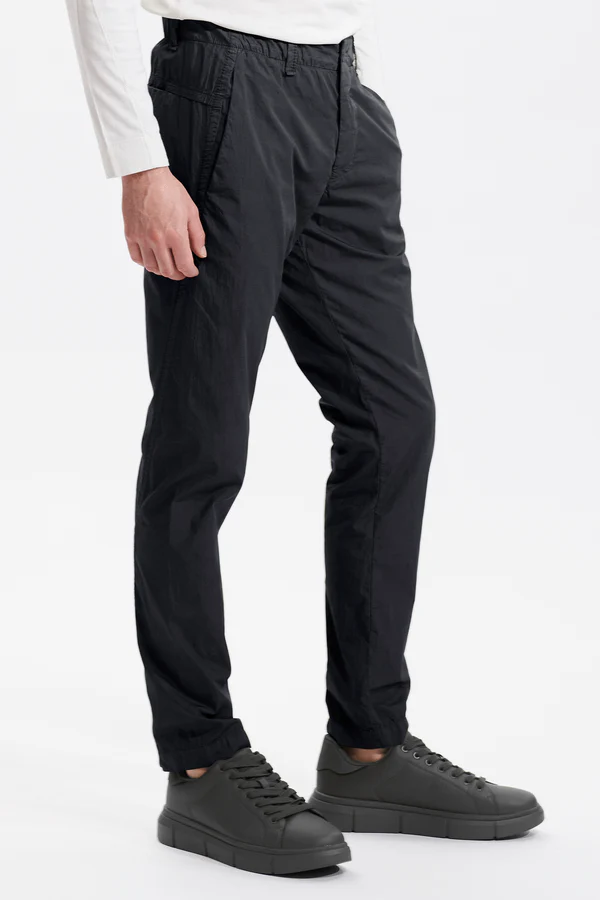 Брюки из хлопковой парашютной ткани — воплощение комфорта и элегантности. Окрашенные после пошива, они обладают уникальным оттенком, который выделяет их среди других. Эластичный пояс с петлями для ремня и застежка на пуговицу обеспечивают идеальную посадку. Боковые карманы в швах и задние карманы вдоль кокетки добавляют практичности, а детали с толстой нитью и пуговицы из хлопкового волокна подчеркивают изысканный стиль.