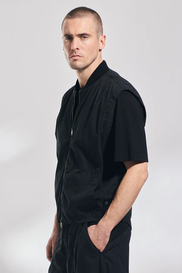 Спортивный жилет из легкой хлопковой парашютной ткани — воплощение свободы и стиля. Оверсайз крой и вязаный воротник в стиле бомбера создают эффектный образ. Застежка на молнии и вместительные карманы добавляют практичности. Съемная этикетка на левой стороне и окрашивание после пошива подчеркивают уникальность модели.