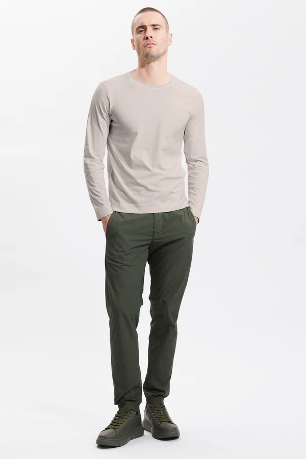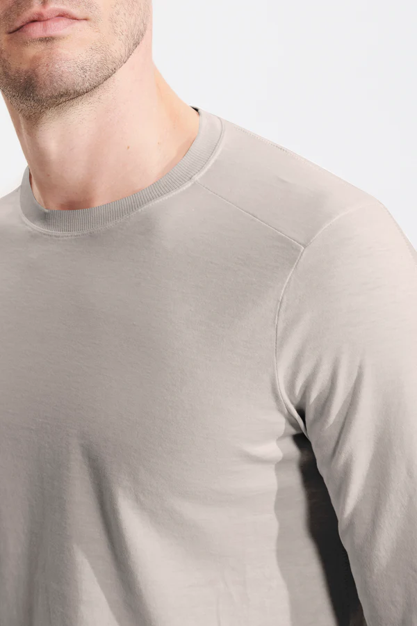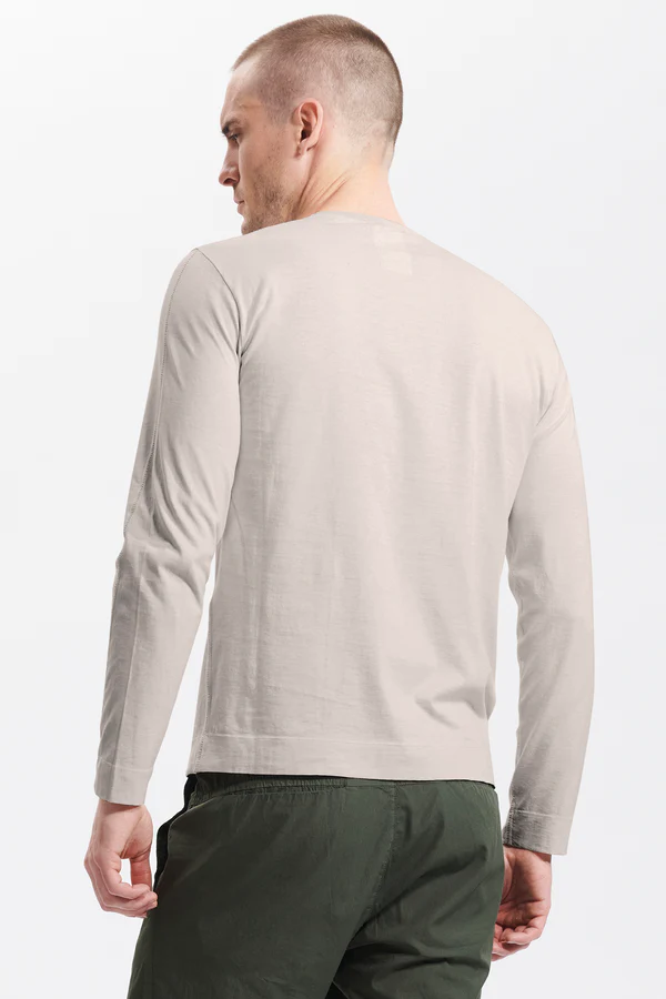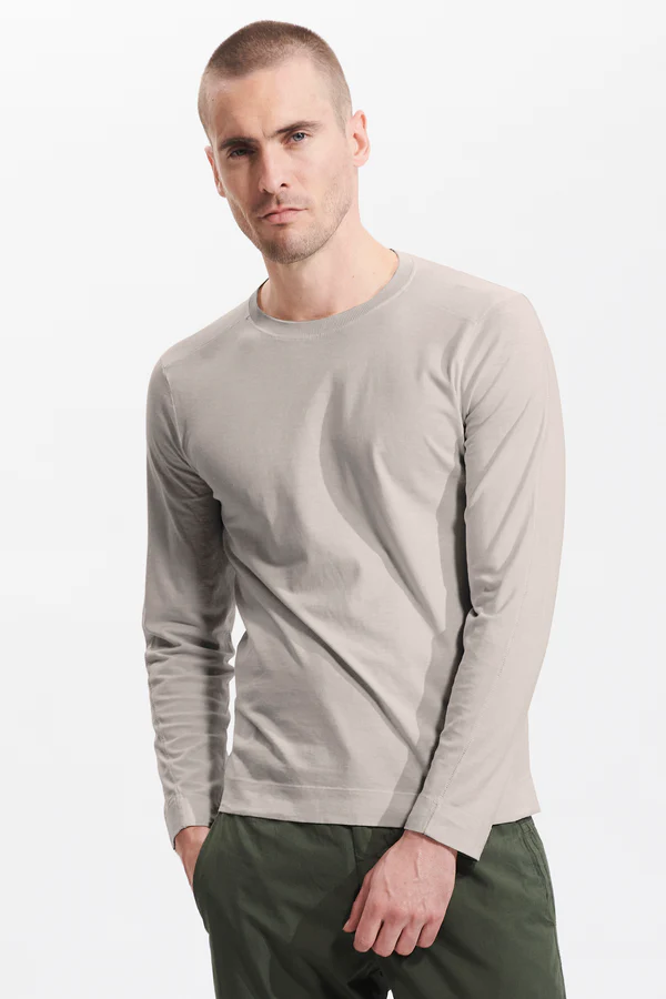 Футболка из мягкого хлопкового трикотажа — воплощение комфорта и современного стиля. Вязаный воротник и уникальная строчка, идущая от плеча через спину к рукавам и бокам, создают выразительный дизайн. Идеальная модель для повседневных образов с характером.