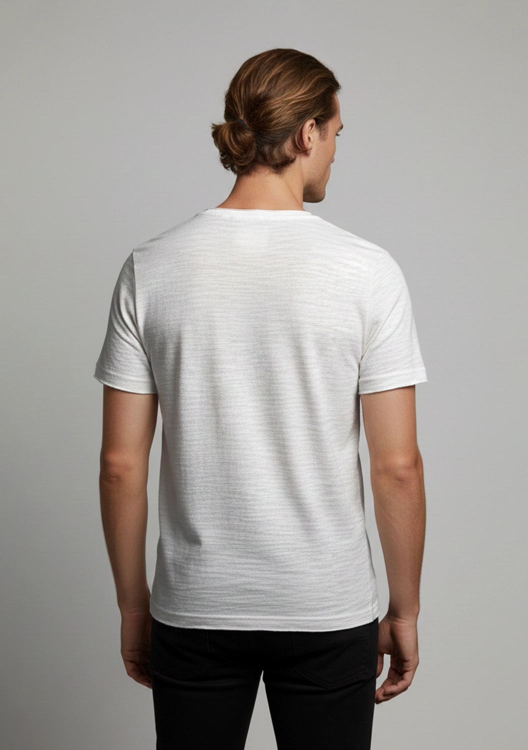 Футболка Transit — это воплощение тактильного комфорта. Полупрозрачный хлопковый трикотаж с мягкой меланжевой фактурой приятно ложится на кожу, создавая ощущение легкости и естественной свободы. Небрежная кромка и фирменная вышивка у горловины добавляют характерный акцент. Базовая вещь с настроением — минимализм, который хочется носить каждый день.