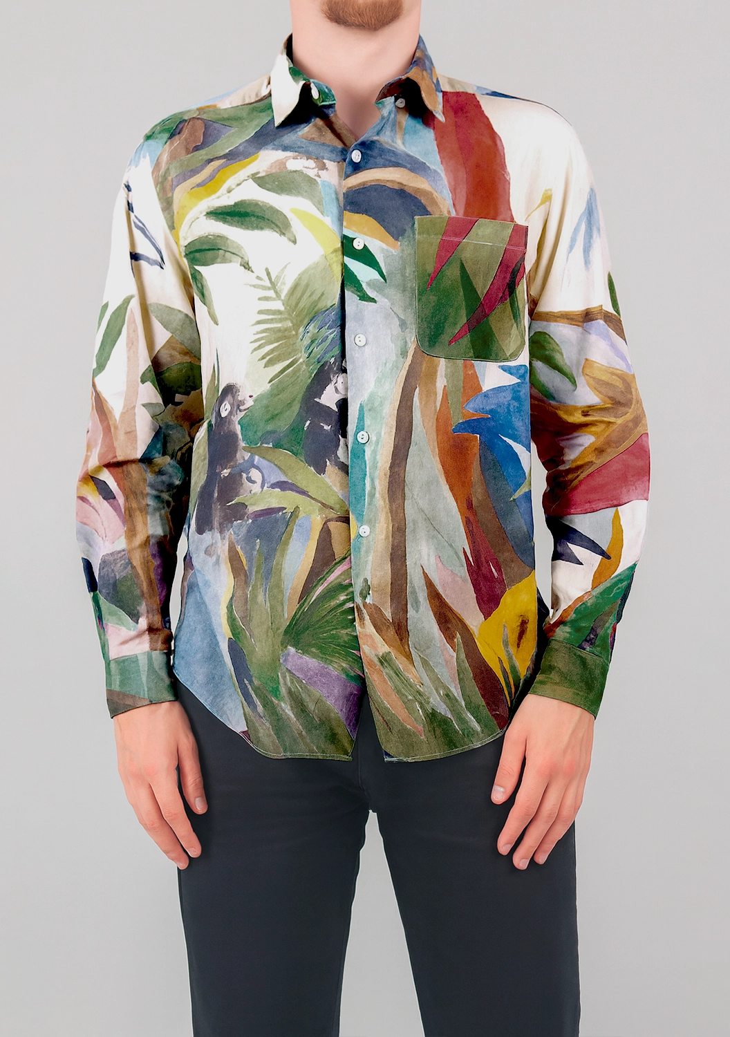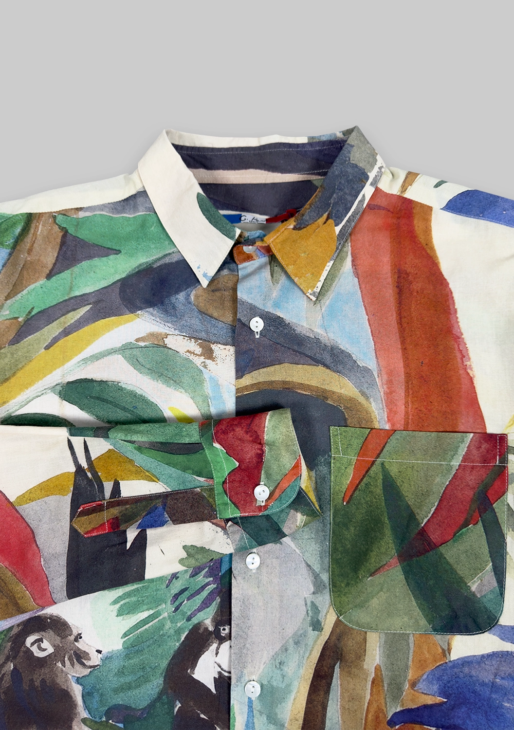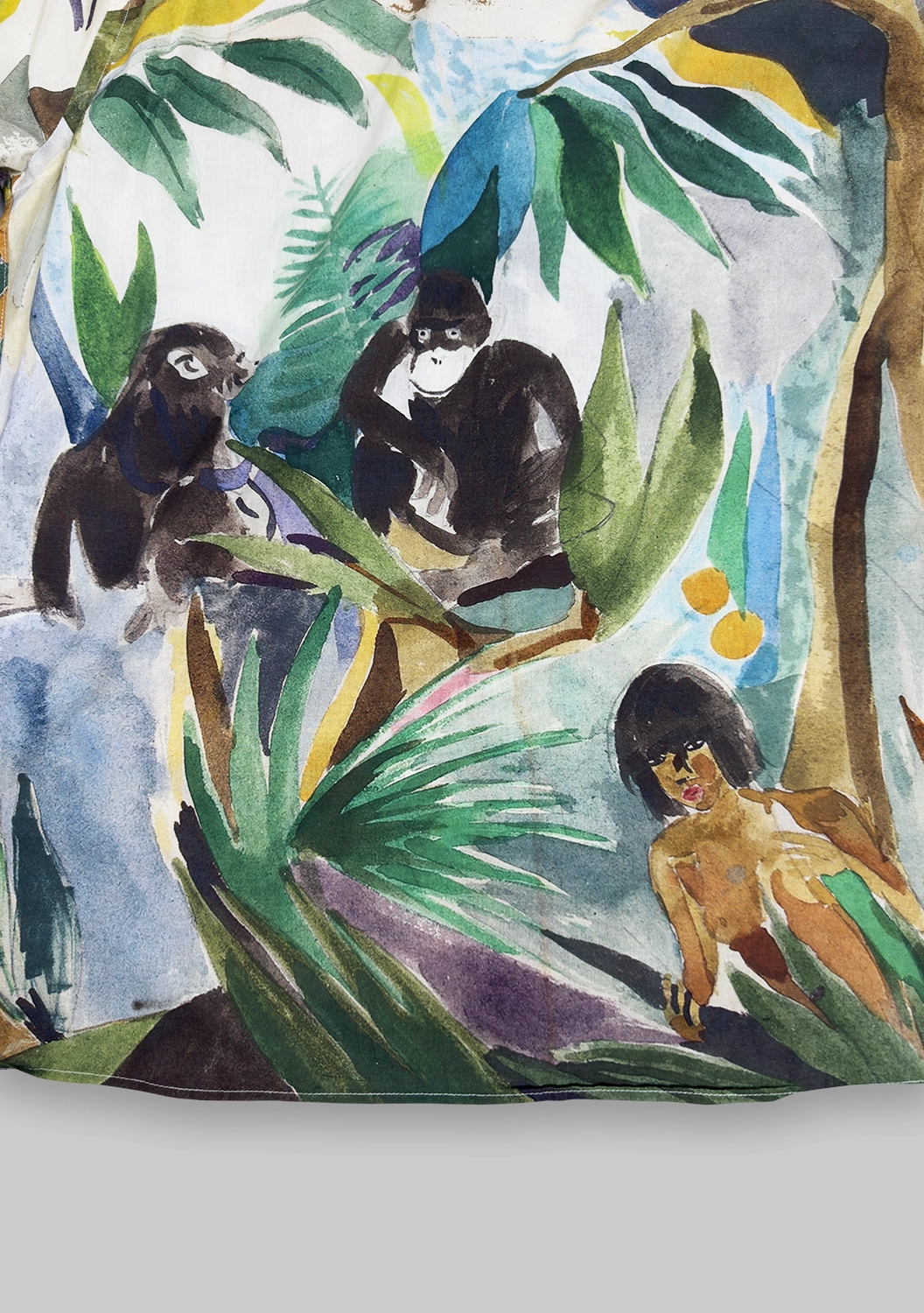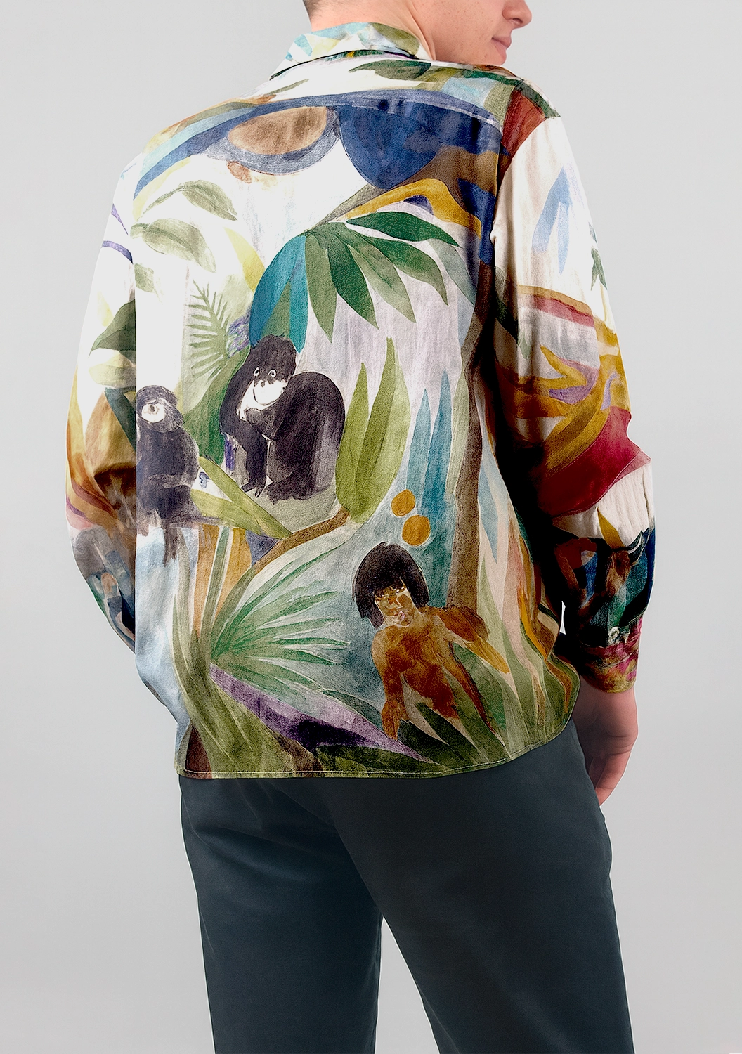 Рубашка Monkey Trees из хлопка от G.Kero — это живое полотно с джунглями, животными и насыщенными красками. Каждая деталь рисунка словно написана акварелью, что делает вещь уникальной. Натуральный хлопок дарит лёгкость и комфорт, а свободный крой позволяет чувствовать себя свободно и стильно.