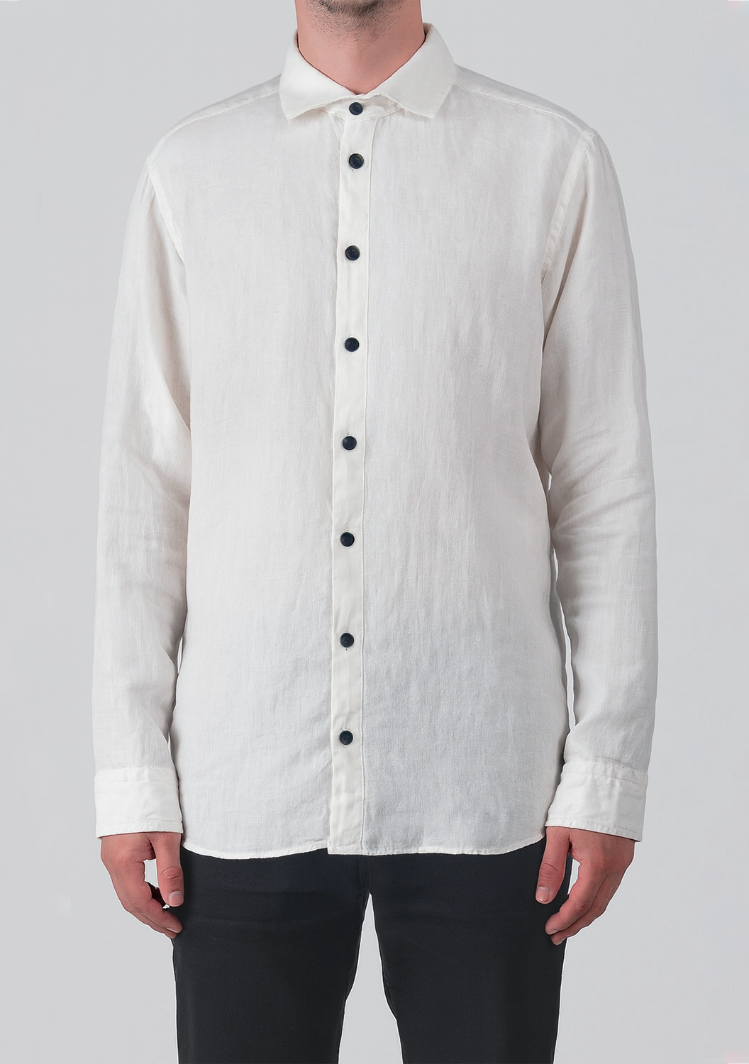 Классическая рубашка из 100% льна — образец сдержанного стиля и тактильного комфорта. Натуральная ткань приятно охлаждает кожу, а прямой крой с контрастными пуговицами придаёт образу строгость с налётом непринуждённости. Универсальный элемент гардероба для тёплого времени года — подходит как для повседневных образов, так и для более формальных сочетаний.