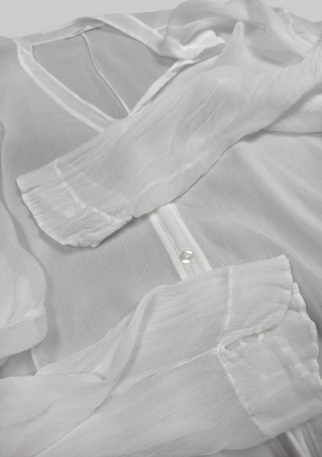 Легкая блуза из воздушной вискозы — воплощение утончённой чувственности. Прозрачная фактура ткани мягко струится по телу, создавая невесомый силуэт и подчёркивая изящество движения. Полуприлегающий крой и рукава с деликатной фактурной текстурой добавляют образу тонкую элегантность.