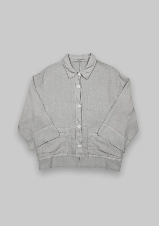 Блуза из льна с рукавами три четверти сочетает простоту и элегантность. Отделка из жоржета на манжетах, планке и подоле добавляет утонченности, делая ее идеальной для повседневной носки.