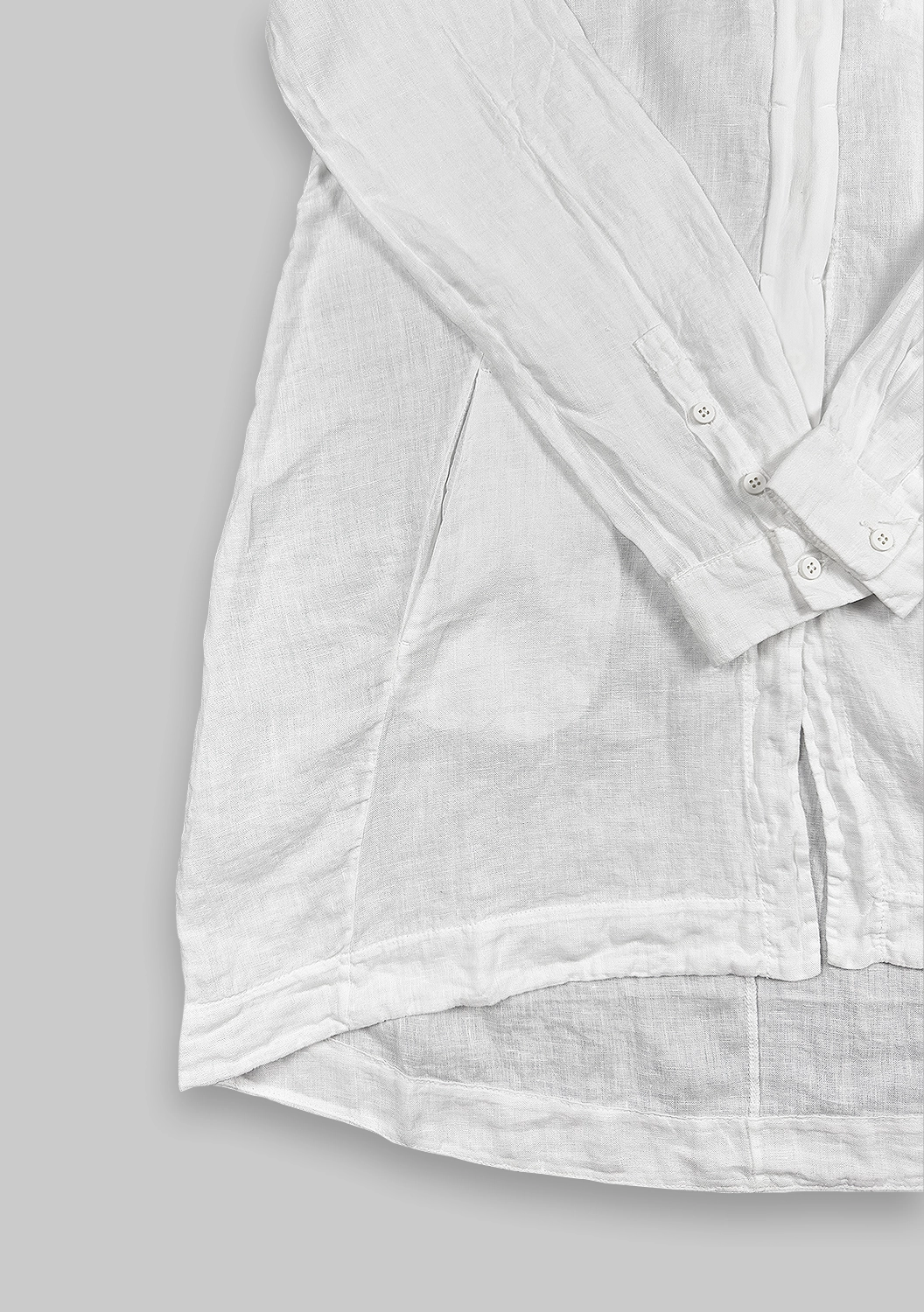 Длинная блуза из легкого льна сочетает утонченный стиль и комфорт. Отложной воротник, планка из вискозного жоржета с потайными пуговицами и нагрудный карман создают изысканный дизайн. Карманы в строченых вытачках и ряд пуговиц на манжетах добавляют практичности, а спинка с кокеткой и складкой — оригинальности. Идеальна для пляжного отдыха и прогулок в жаркие дни.