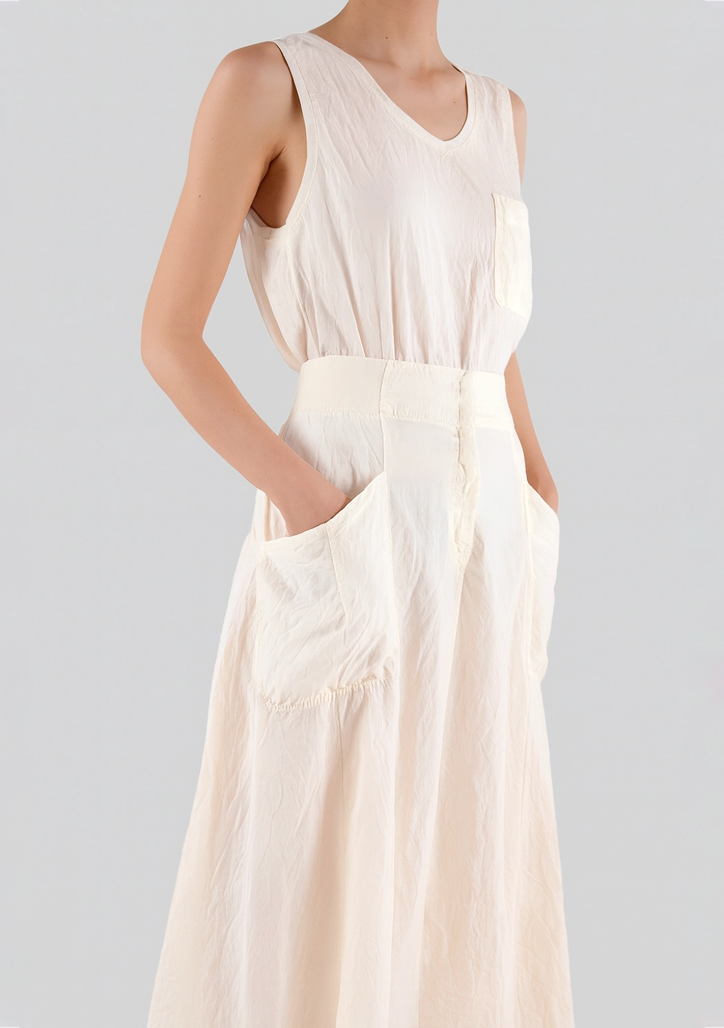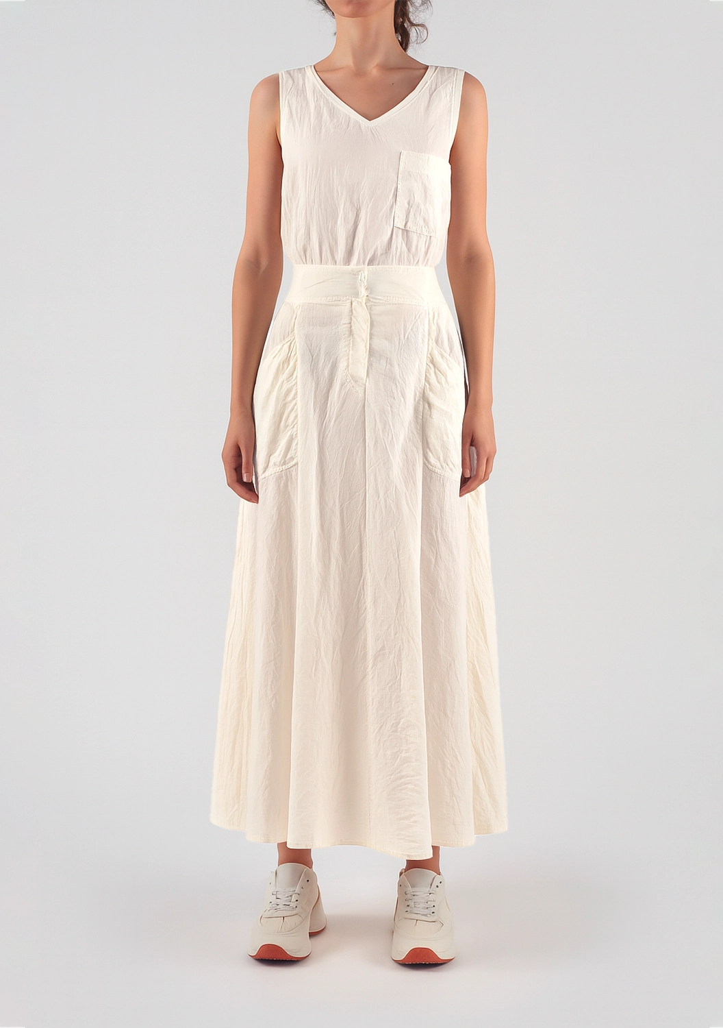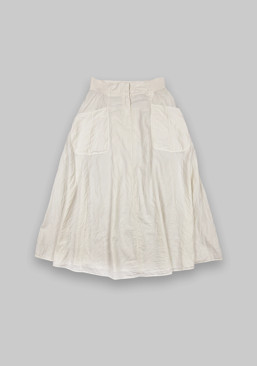 Длинная расклешенная юбка из смеси шелка со слегка скошенными клапанами и большими карманами — воплощение элегантности. Эластичный пояс с застежкой на молнию и пуговицы обеспечивает комфортную посадку. Окрашена после пошива для эксклюзивного оттенка.