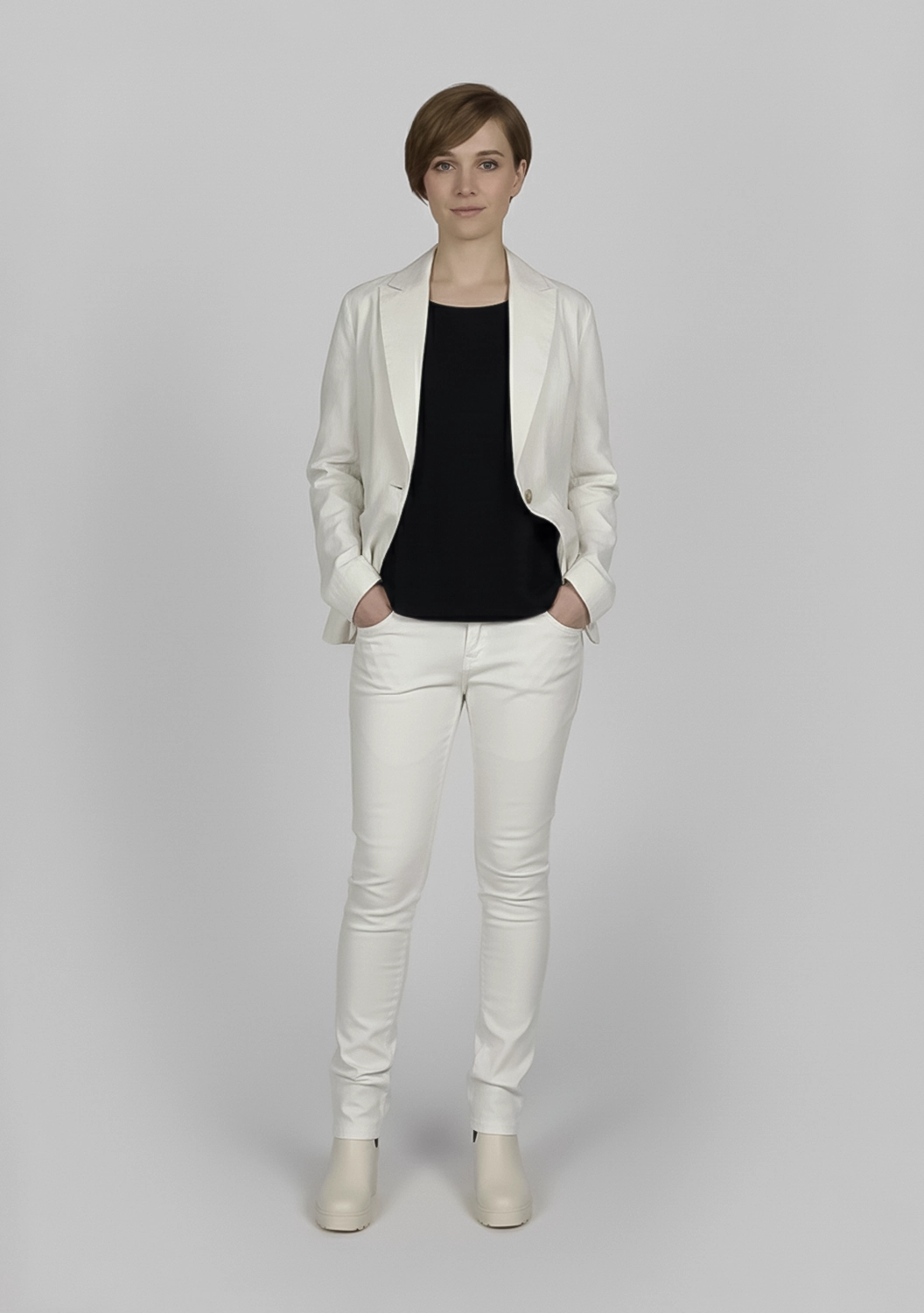 Зауженные брюки Prisca из хлопка от H+ — это минимализм с акцентом на комфорт и посадку. Мягкая ткань с деликатной фактурой приятно прилегает к телу, а эластичная вставка на поясе обеспечивает свободу движений. Чистый белый цвет и лаконичные карманы делают модель универсальной: сочетайте с жакетом из той же коллекции или создавайте контрастные образы.