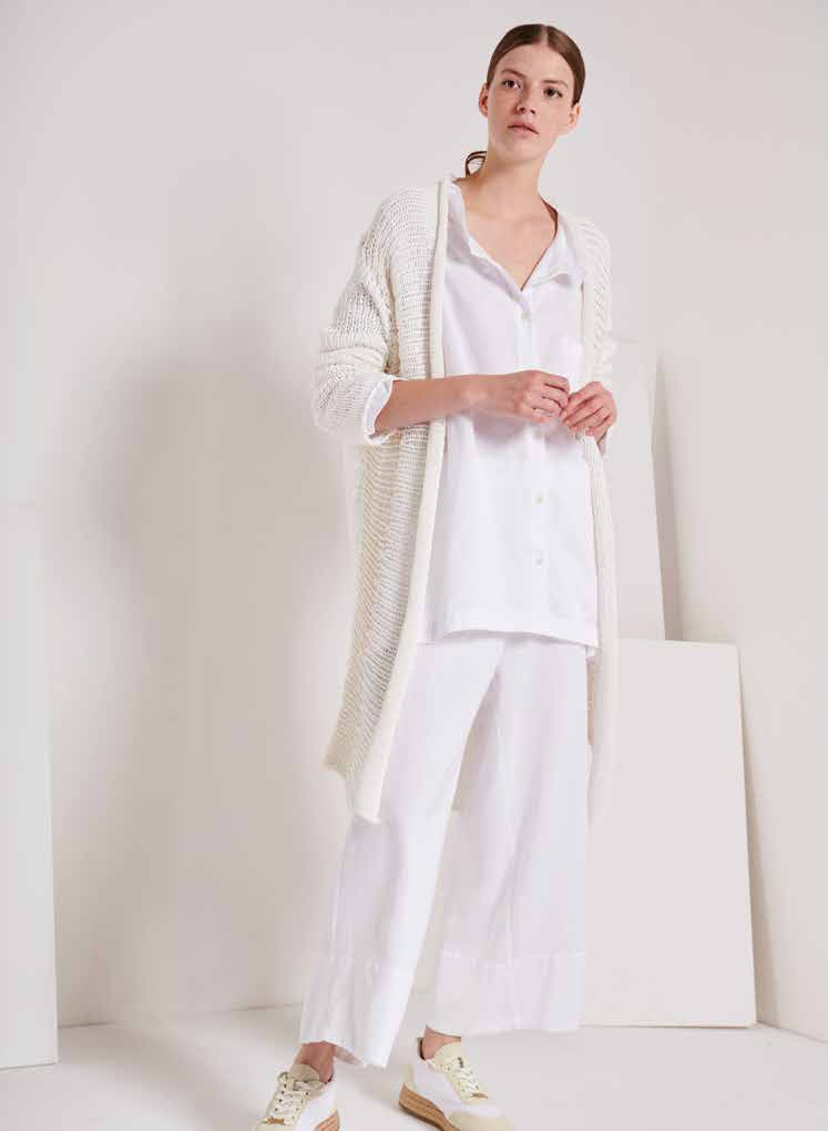 Итальянская марка Transit осуществляет полный процесс производства изделий и является семейным бизнесом. Высококачественное сырье, невычурная элегантность, индивидуальность, свобода. Тесному костюму по фигуре бренд предлагает канонический монохромный комплект. Основу палитры составляют бетонный, стальной, антрацитовый и брезентовый оттенки. В компании утверждают, что именно пыльные и «закатные» цвета лучше подчеркивают текстуру натуральных тканей.