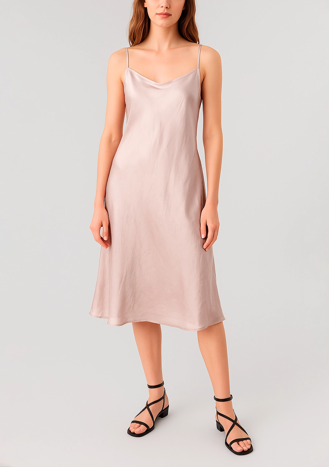 Платье Ami из 100% шелка — твой идеальный спутник для легкого и стильного образа жизни. Струящаяся ткань мягко облегает фигуру, создавая утонченный силуэт. Тонкие бретели и свободный крой подчеркивают естественную грацию, а деликатный блеск шелка добавляет изысканности. Идеально подойдет для теплых дней: будь то прогулка по городу, встреча с друзьями или уютный вечер дома.
