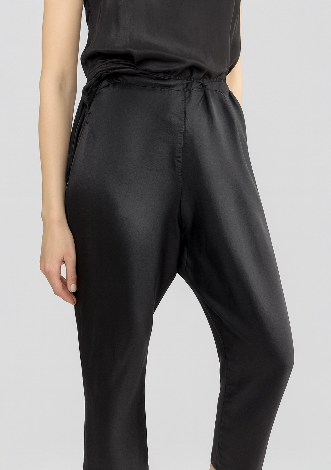 Погрузитесь в комфорт и стиль с этими изысканными брюками Japan из 100% шелка. Мягкая, гладкая ткань создает легкий, струящийся силуэт, подчеркивающий вашу природную грацию. Пояс с шнурком обеспечивает идеальную посадку, добавляя практичности и утонченного дизайна. Эти брюки — идеальный выбор для расслабленных дней или элегантных выходов. Легкие и дышащие, они подарят вам ощущение свободы и роскоши в любой момент.