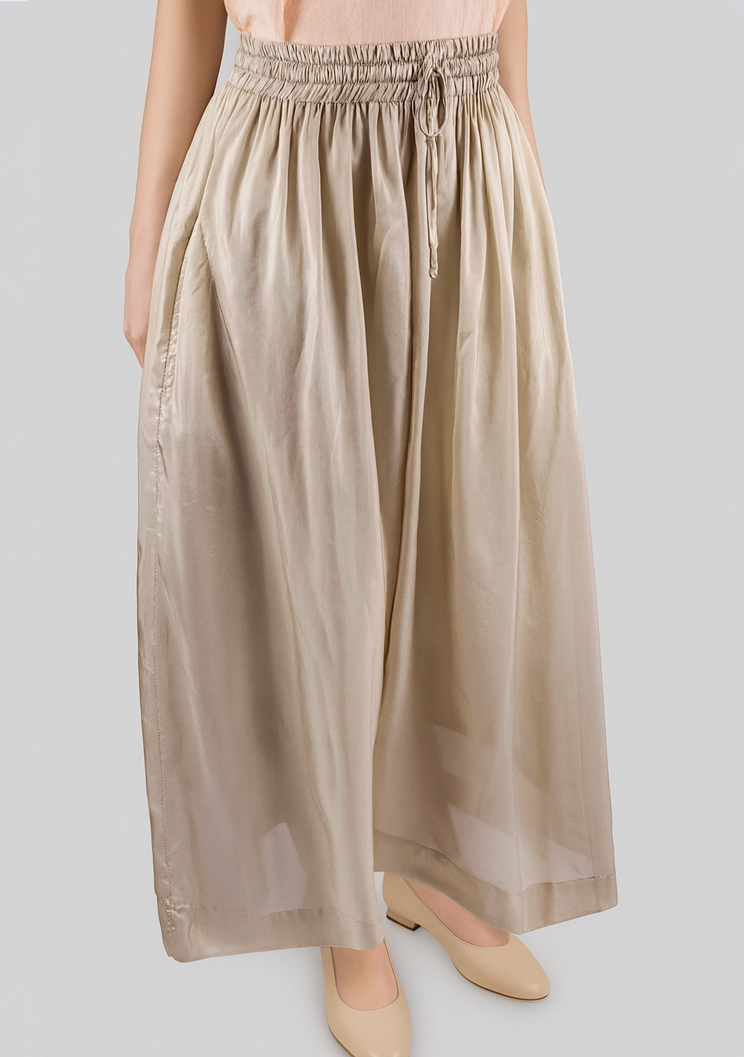 Элегантная юбка Window из 100% шелка — идеальное сочетание роскоши и универсальности! Нежный кремовый оттенок и мягкий блеск шелка создают утонченный образ, а струящийся силуэт длиной миди добавляет легкости и грации. Высокая талия с изящной сборкой подчеркивает фигуру, обеспечивая комфортную посадку благодаря регулируемому поясу. Эта юбка станет вашим фаворитом для создания романтичных и стильных образов — от повседневных прогулок до вечерних выходов.