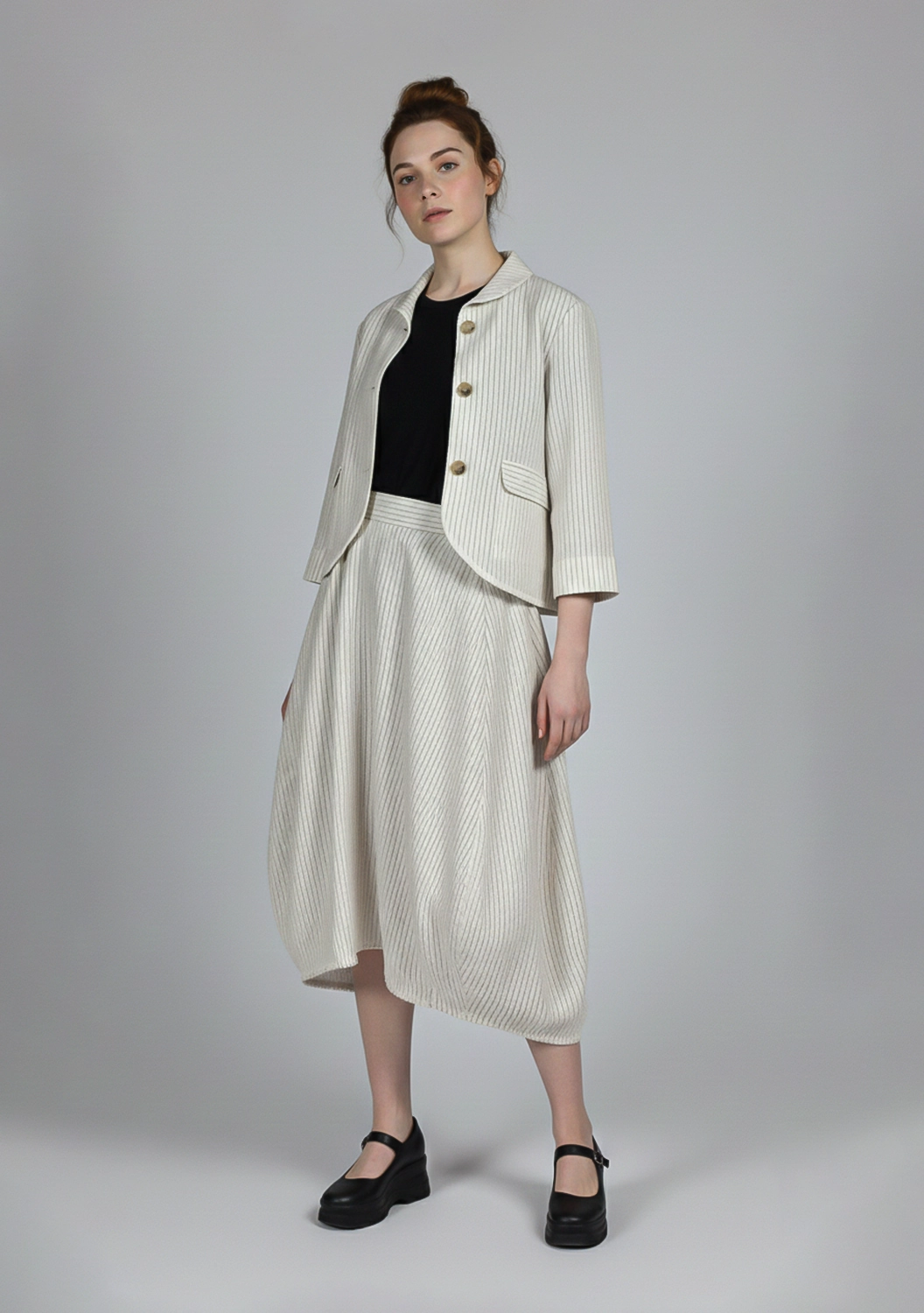 Юбка Jenny из смеси льна и хлопка от H+ — это воплощение свободы движений и продуманного дизайна. Объёмный крой с архитектурной формой создаёт эффект лёгкой скульптурности, а тонкая вертикальная полоска визуально вытягивает силуэт. Глубокие карманы добавляют практичности, а приятная на ощупь ткань делает эту модель идеальной для тёплого сезона. Идеальна для тех, кто ценит комфорт и выразительный минимализм.