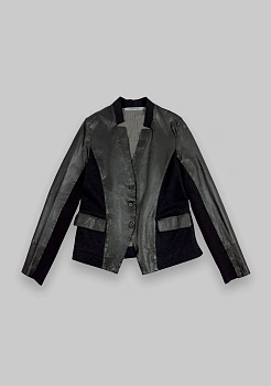 Жакет из овчины с шерстяными вставками — воплощение тактильного контраста и архитектурной строгости. Матовая гладкость кожи гармонично сочетается с мягкой фактурой плотной шерсти, создавая эффектную и при этом функциональную форму. Аккуратный крой подчёркивает фигуру, а отсутствие воротника добавляет образу современную лаконичность. Этот жакет станет выразительным акцентом в гардеробе — для тех, кто ценит фактуру, форму и индивидуальность в каждой детали.