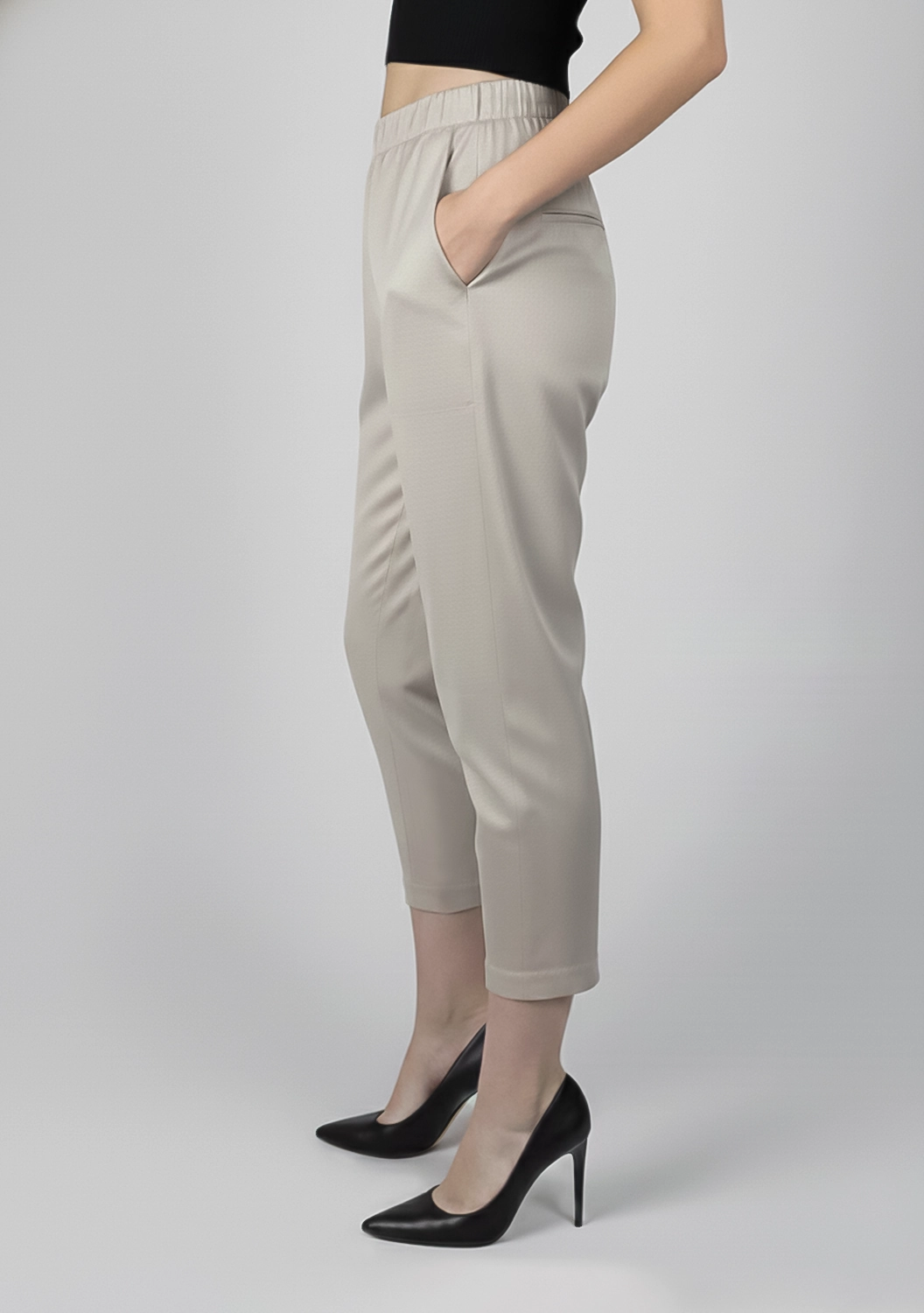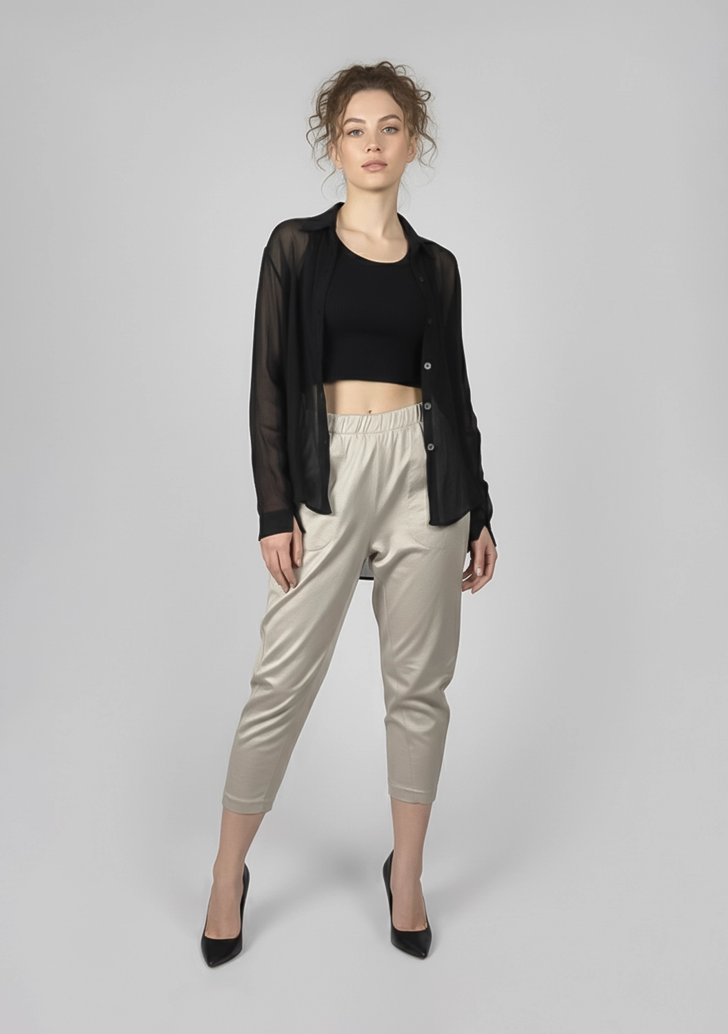Свобода движения и легкость в каждой детали — укороченные брюки из мягкого хлопка созданы для комфорта и непринуждённого стиля. Приятная на ощупь фактура материала обеспечивает деликатный контакт с кожей, а свободный крой с эластичным поясом подстраивается под фигуру, не сковывая движения. Вместительные накладные карманы добавляют образу функциональности и расслабленности.