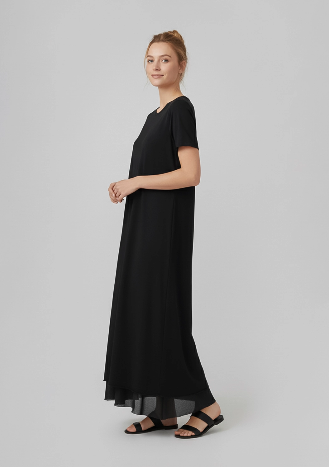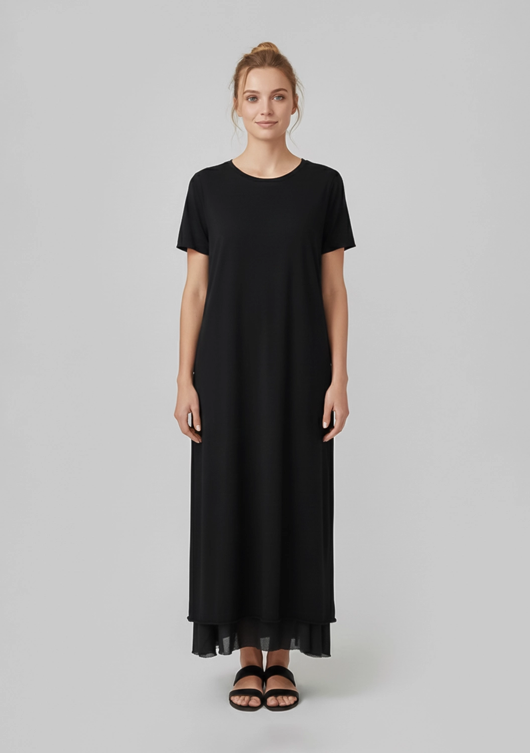 Платье-макси от MJ Watson с лаконичным силуэтом и мягкой посадкой — воплощение комфорта и утончённости. Внутренняя подкладка из тонкого полупрозрачного материала проходит по всей длине, создавая эффект многослойности и добавляя лёгкости каждому движению. Тактильно приятный трикотаж мягко облегает тело, делая это платье идеальным выбором для неспешных прогулок и расслабленных выходов.