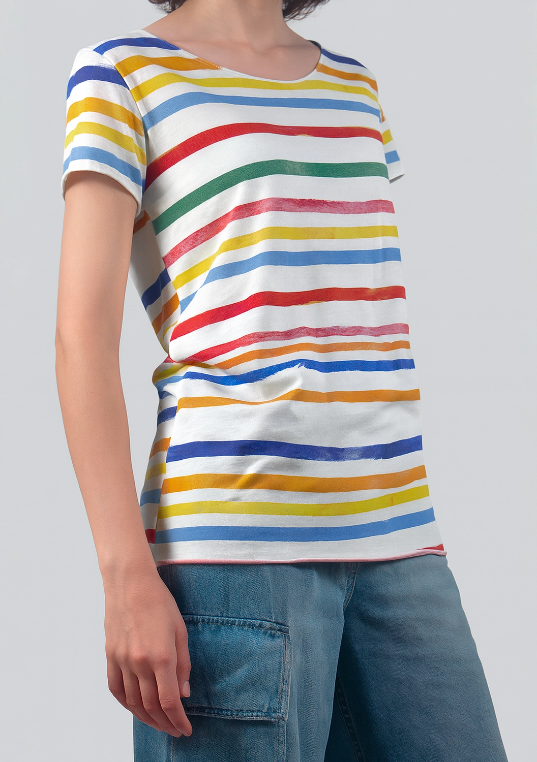 Футболка Summer из мягкого хлопка от G.Kero — это лёгкость и игра красок. Яркие полосы словно написаны акварелью, а необработанный край придаёт образу свободу и непринуждённость. Ткань дышит и приятно касается кожи, создавая ощущение полного комфорта.