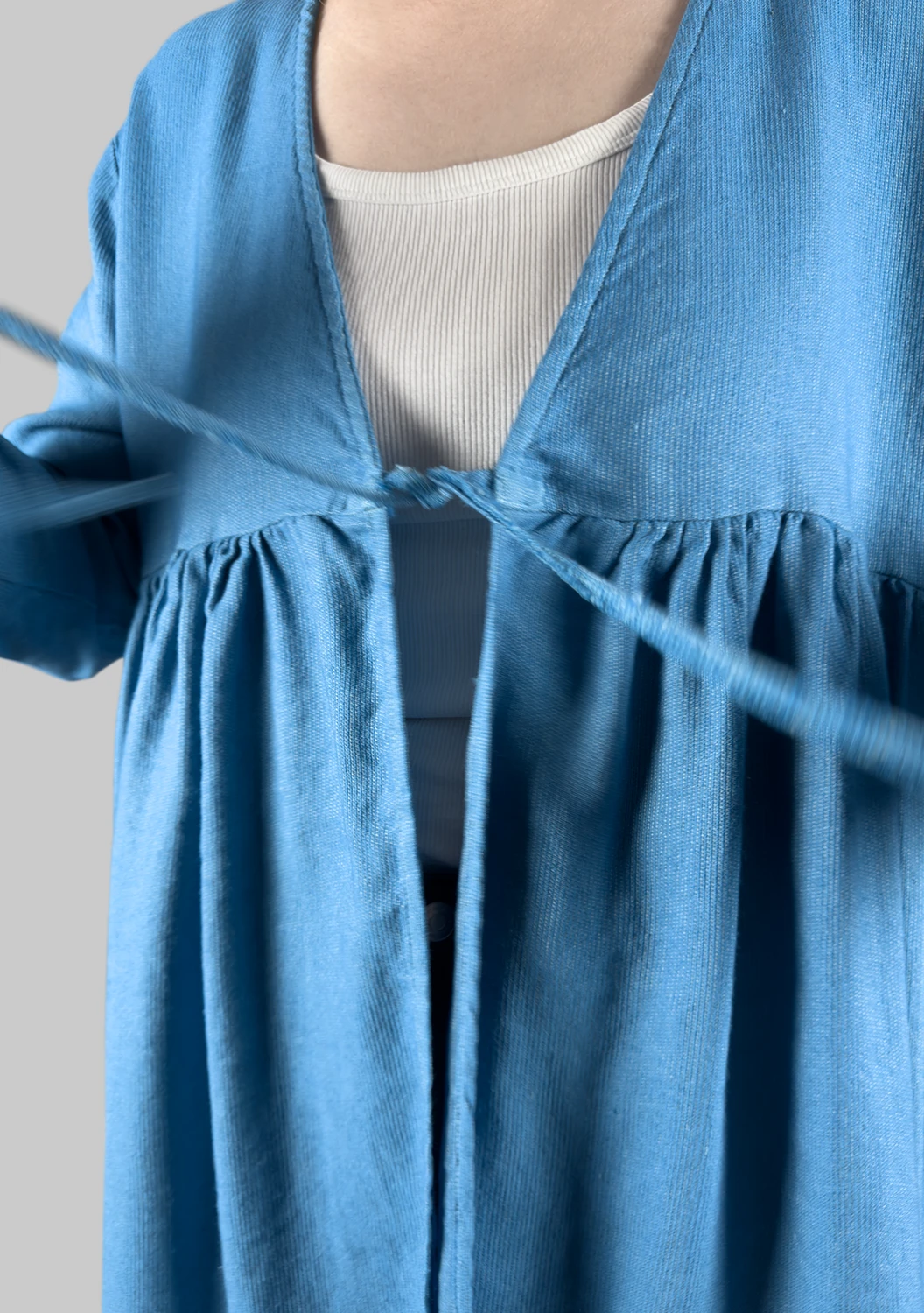 Элегантное платье-накидка из смеси льна и кашемира — легкое, дышащее и невероятно мягкое. Свободный крой с завязкой на талии добавляет универсальности, а глубокий вырез и длинные рукава создают утонченный силуэт. Идеально для casual-образа.