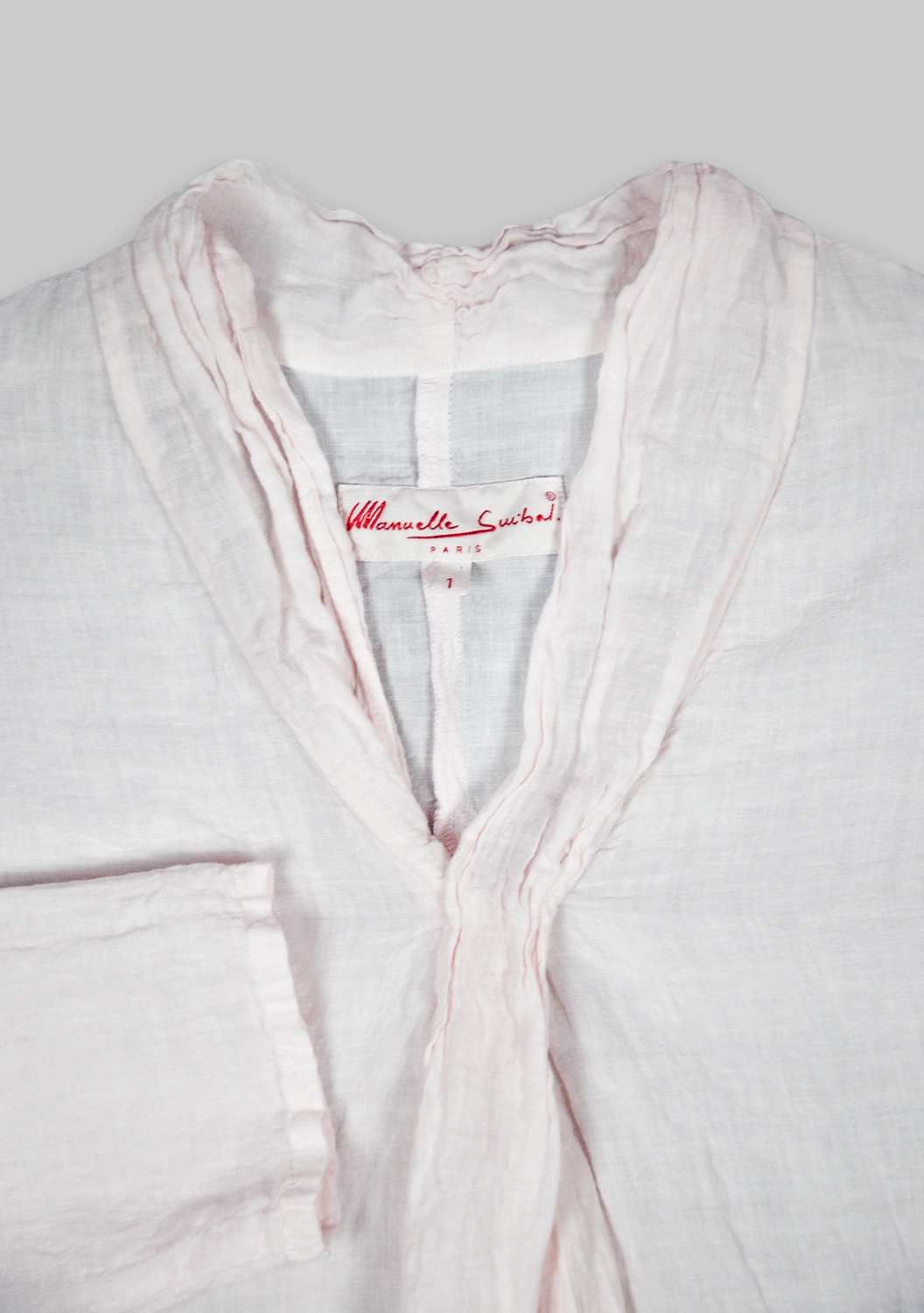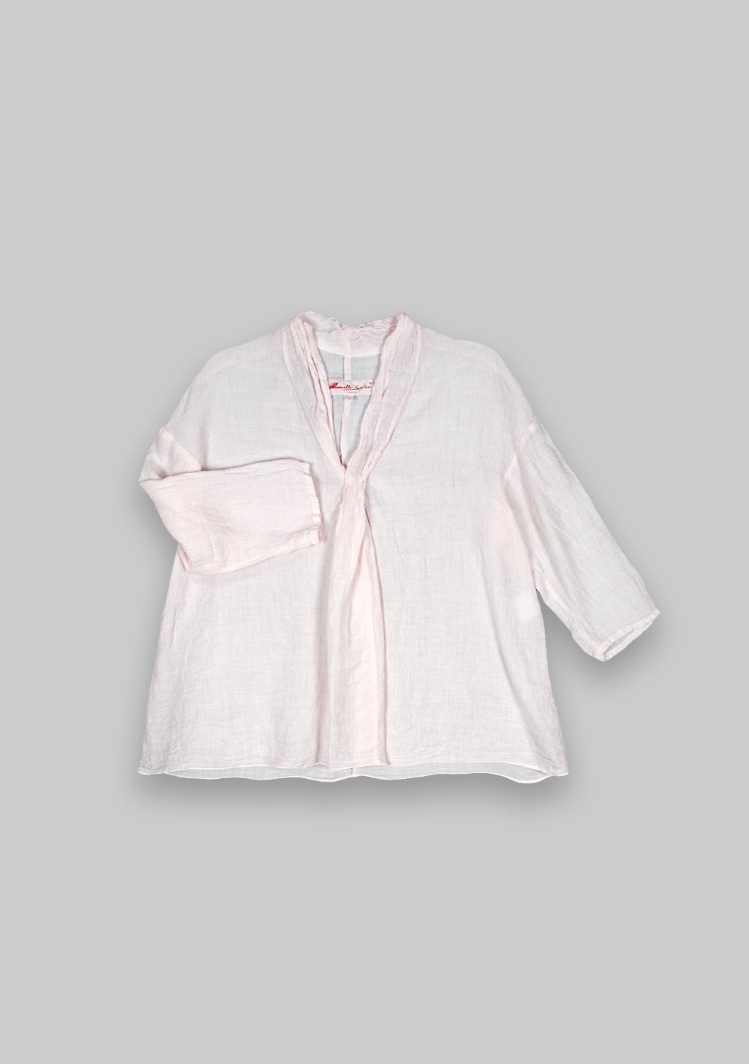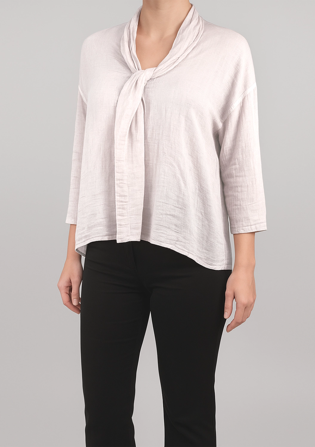Блуза LIS изо льна с мягкой драпировкой на вороте и рукавами длиной три четверти — сочетание легкости и выразительности. Воздухопроницаемая текстура ткани приятно ощущается на коже и придаёт образу изысканную непринуждённость.