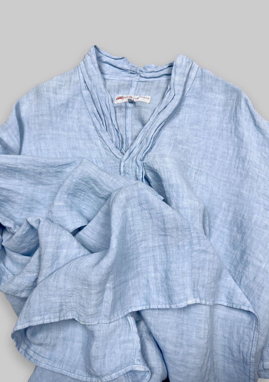 Блуза LIS изо льна с мягкой драпировкой на вороте и рукавами длиной три четверти — сочетание легкости и выразительности. Воздухопроницаемая текстура ткани приятно ощущается на коже и придаёт образу изысканную непринуждённость.