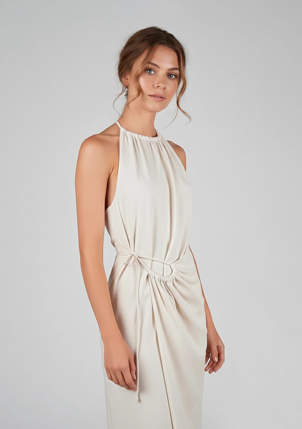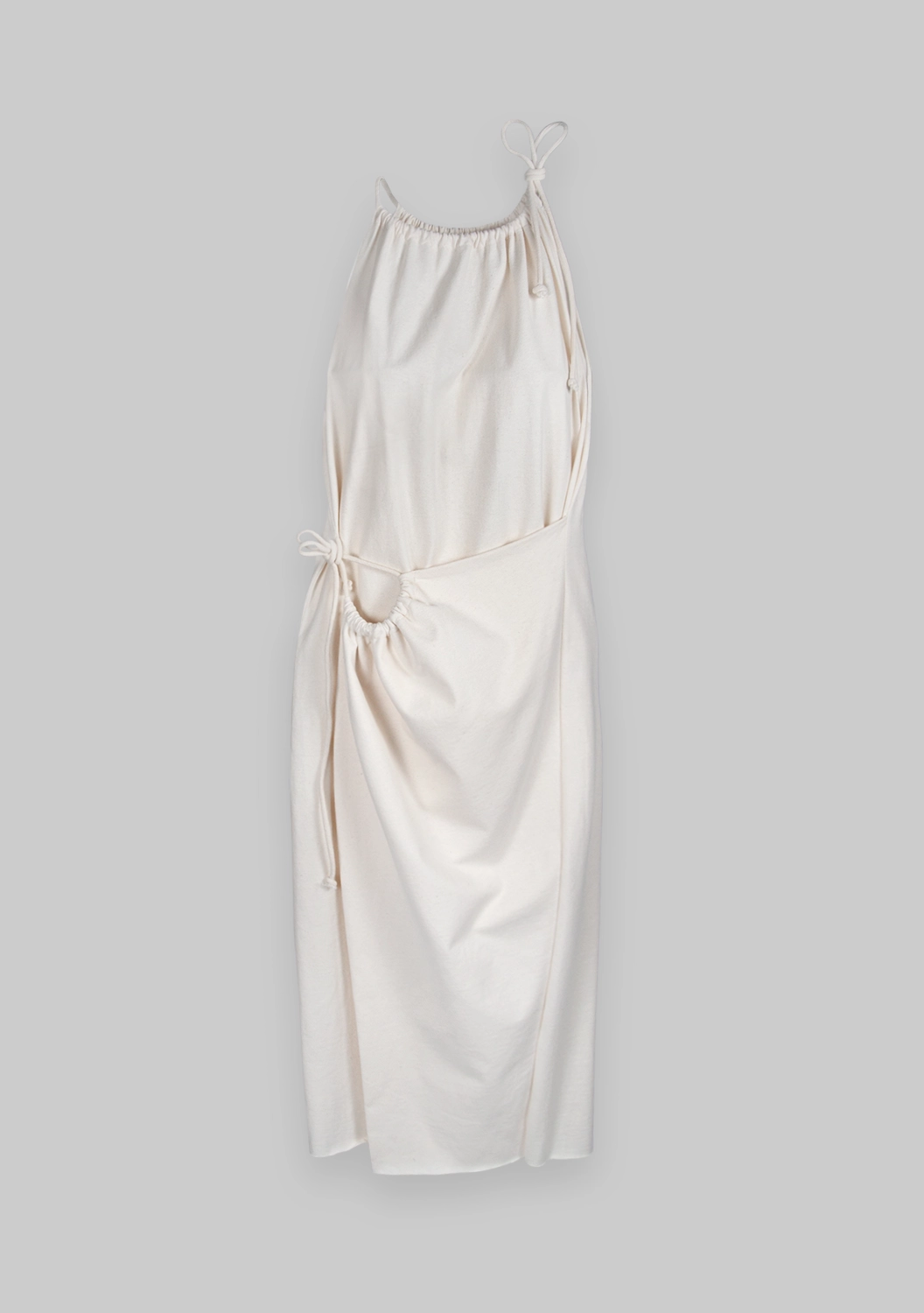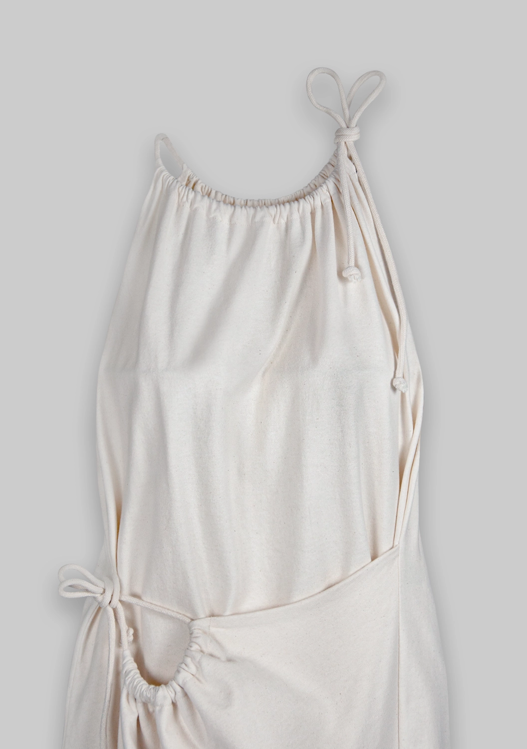 ETRUSCO — платье с характером и мягким прикосновением. Выполнено из натурального хлопка, оно обнимает тело и подчёркивает фигуру за счёт регулируемой сборки на талии. Завязки на плече и бедре придают образу лёгкую небрежность и подчёркнутую женственность. Идеальный выбор для тех, кто ценит необычные формы и комфорт натуральных тканей.