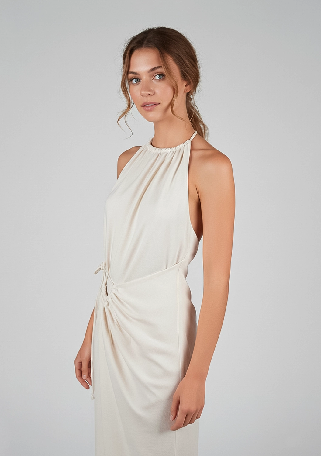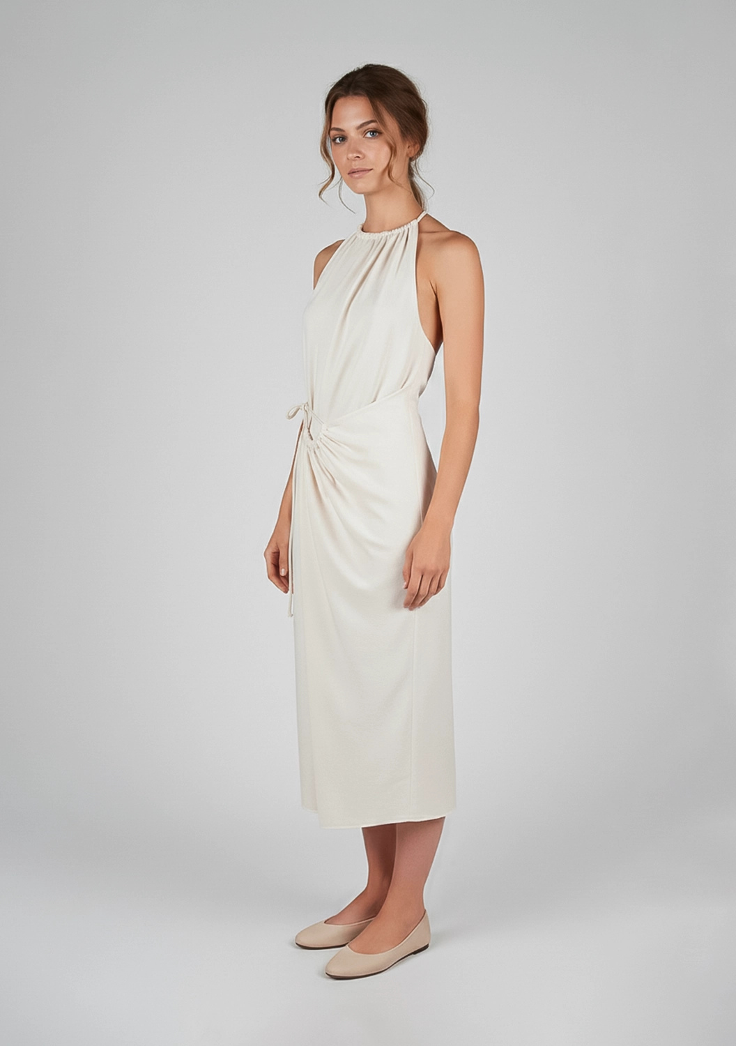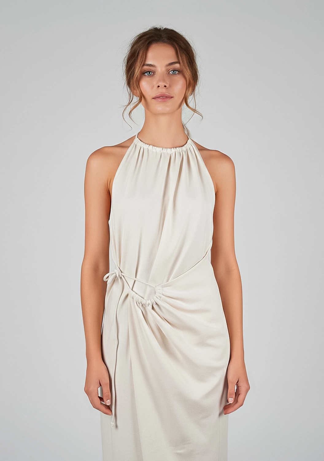 ETRUSCO — платье с характером и мягким прикосновением. Выполнено из натурального хлопка, оно обнимает тело и подчёркивает фигуру за счёт регулируемой сборки на талии. Завязки на плече и бедре придают образу лёгкую небрежность и подчёркнутую женственность. Идеальный выбор для тех, кто ценит необычные формы и комфорт натуральных тканей.