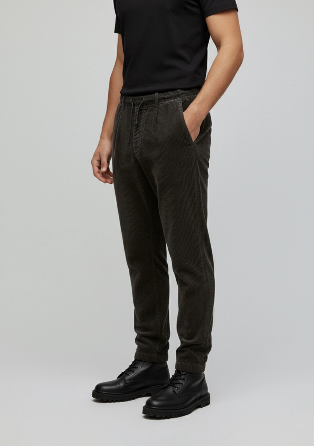 Брюки из хлопка и льна от Transit — воплощение непринужденного комфорта и утончённой текстуры. Мягкий вельвет с глубоким фактурным рельефом приятно ощущается на коже, создавая уютное и современное впечатление. Свободный крой сужается к низу, эластичный пояс с кулиской обеспечивает идеальную посадку и лёгкость движения.