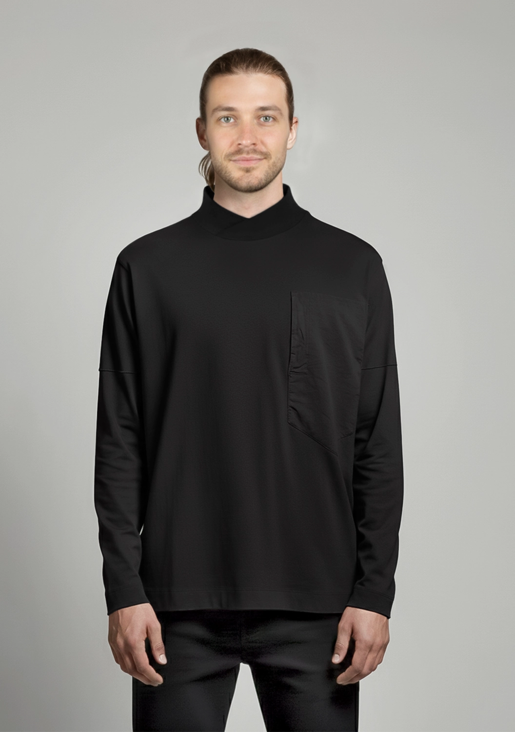 Лонгслив от бренда Transit с фактурным трикотажем, мягким воротом-стойкой и накладным карманом. Приятная к телу ткань комфортна в носке и подчёркивает естественную пластику движений.