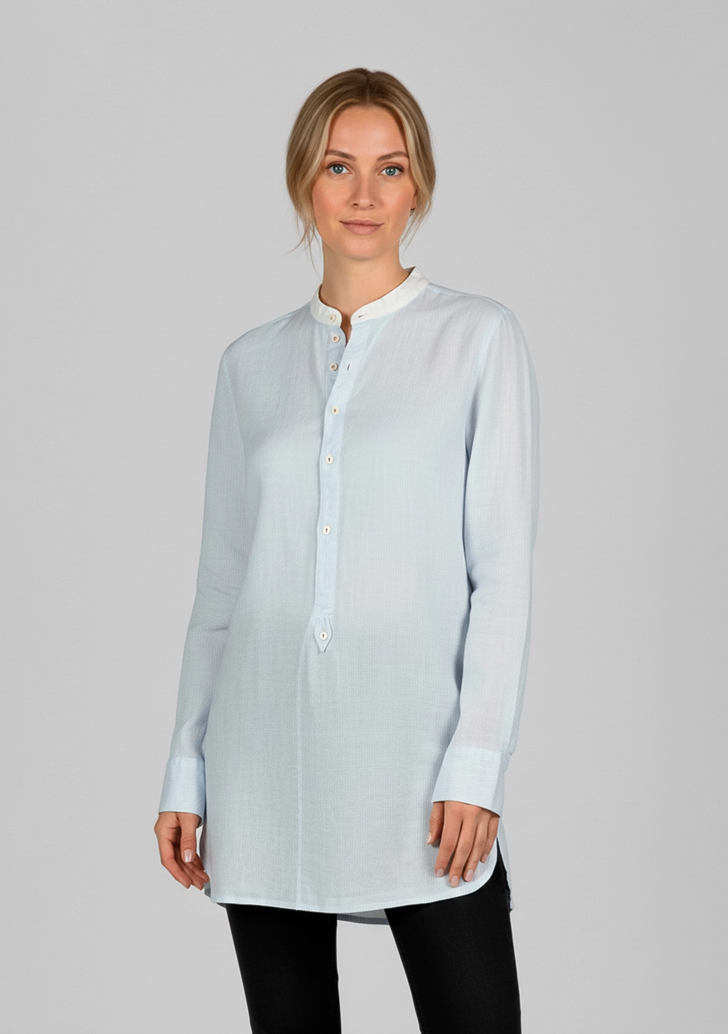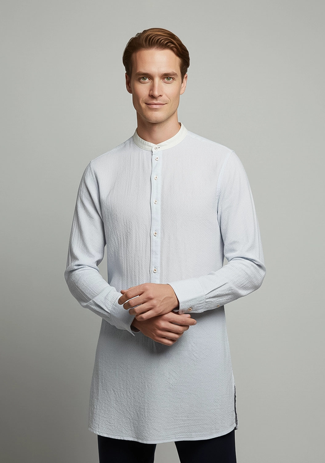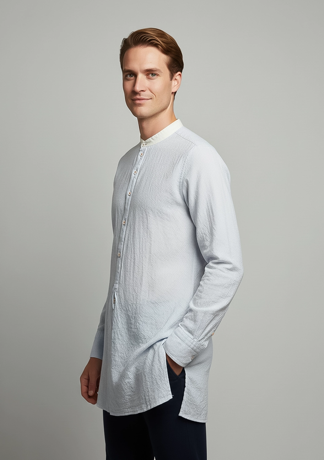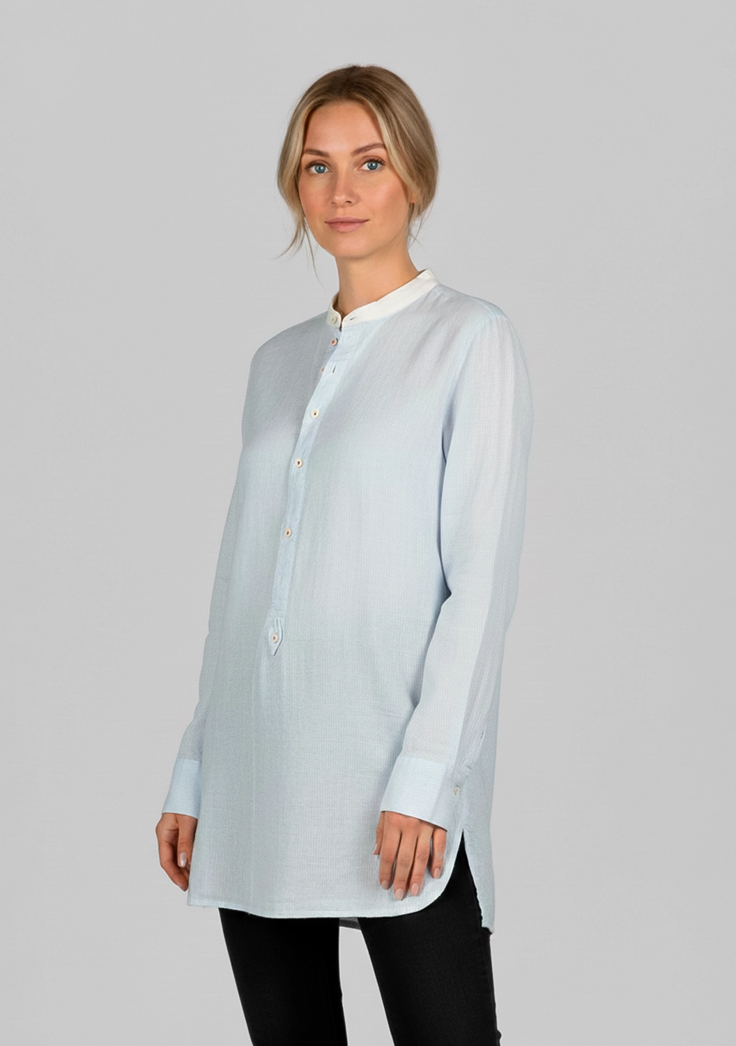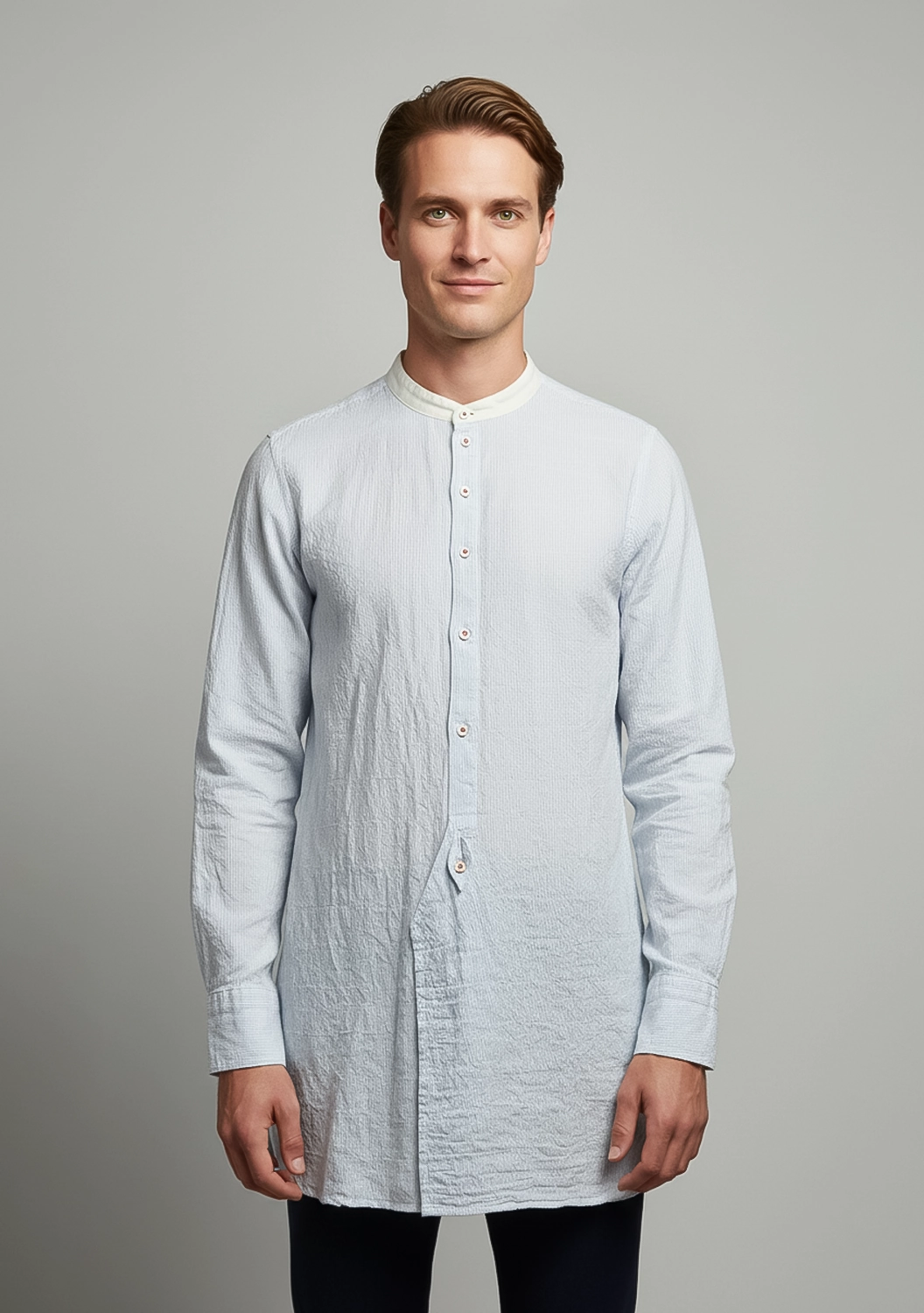Удлинённая хлопковая рубашка унисекс Claus — лёгкая, дышащая и удивительно мягкая на ощупь. Благодаря прямому крою и высоким боковым разрезам она красиво струится по телу, не сковывая движений. Контрастная стойка-воротник и акцентные пуговицы придают образу индивидуальность. Идеальный выбор для тех, кто ценит универсальность и выразительную простоту.