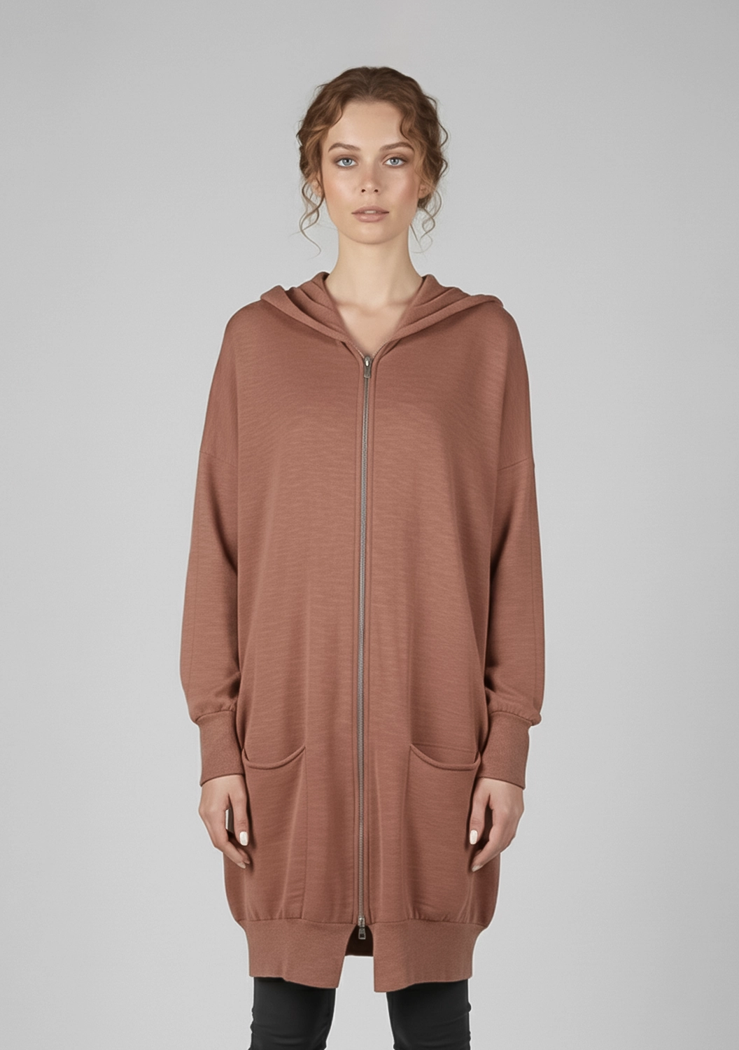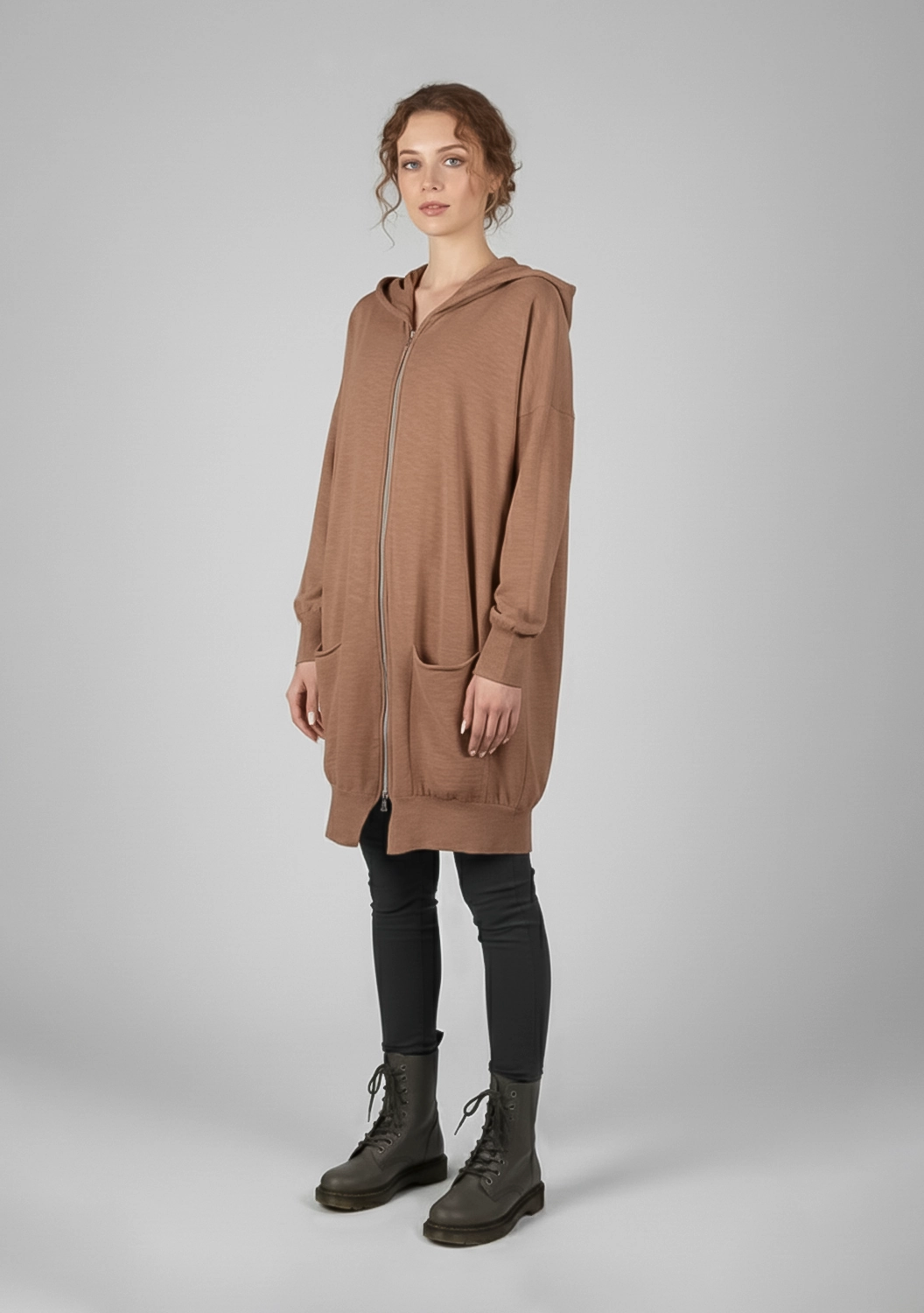 Кардиган из хлопка, в который хочется укутаться. Лёгкий и дышащий, с капюшоном и мягкими манжетами — он идеально садится на фигуру, не сковывая движений. Объёмный крой и глубокие карманы придают образу расслабленность и уют. Молния на два бегунка позволяет регулировать посадку. Ненавязчивый комфорт, который легко впишется в любой гардероб.