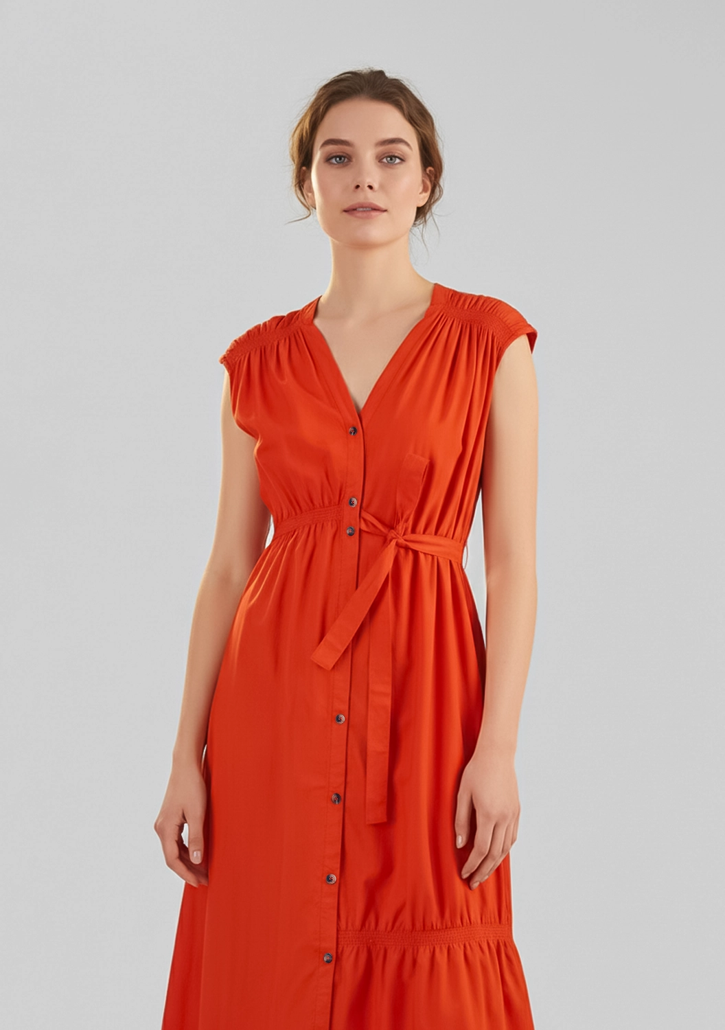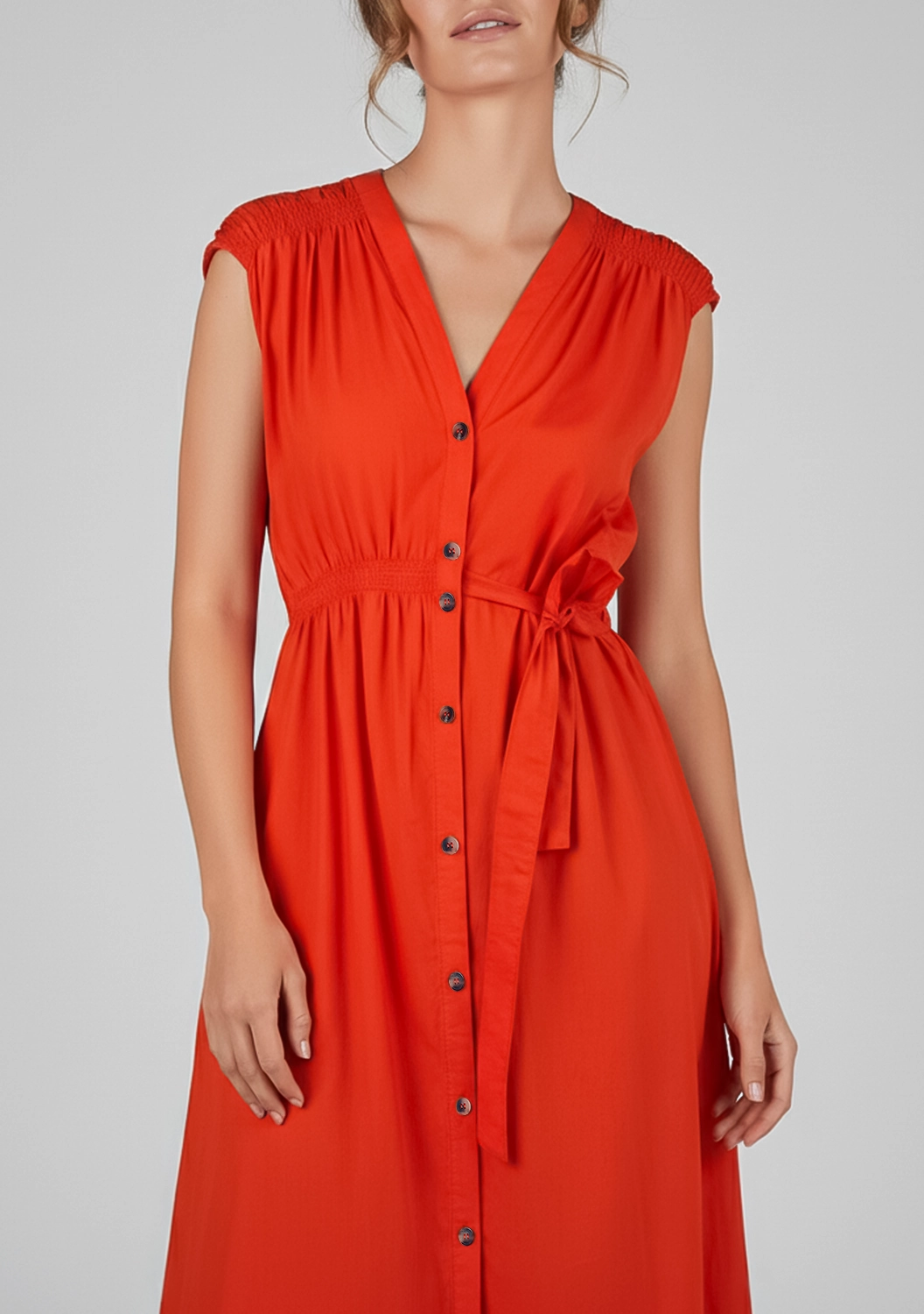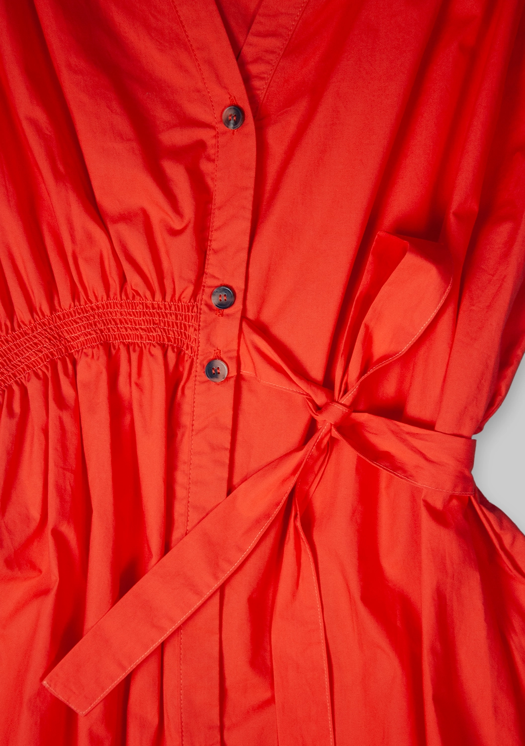 Платье CABANA — это воплощение летней легкости и яркости. Сочный цвет придает образу энергию, а мягкий хлопок приятно ложится на кожу. Приталенный крой с поясом подчеркивает силуэт, а пуговицы по всей длине добавляют нотку непринужденной элегантности. Идеальный вариант как для городской прогулки, так и для отдыха у моря.