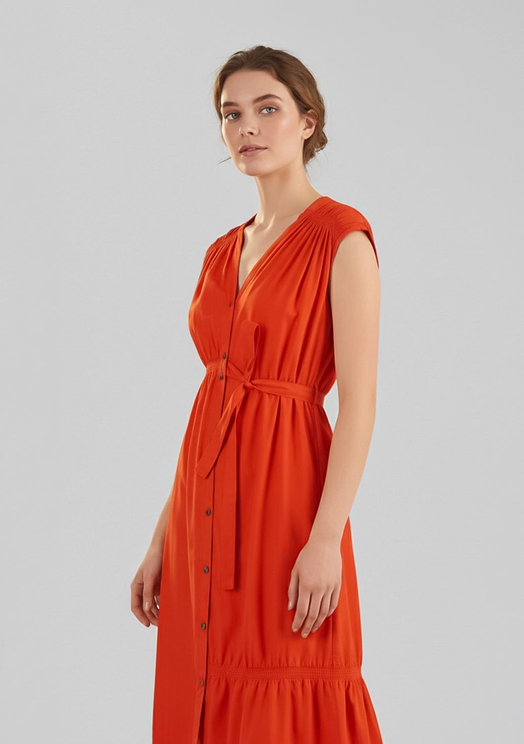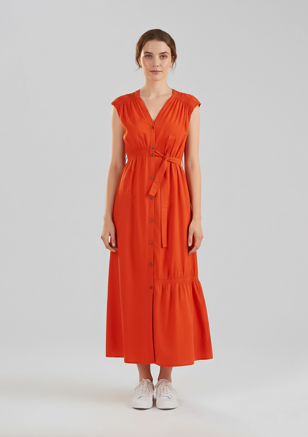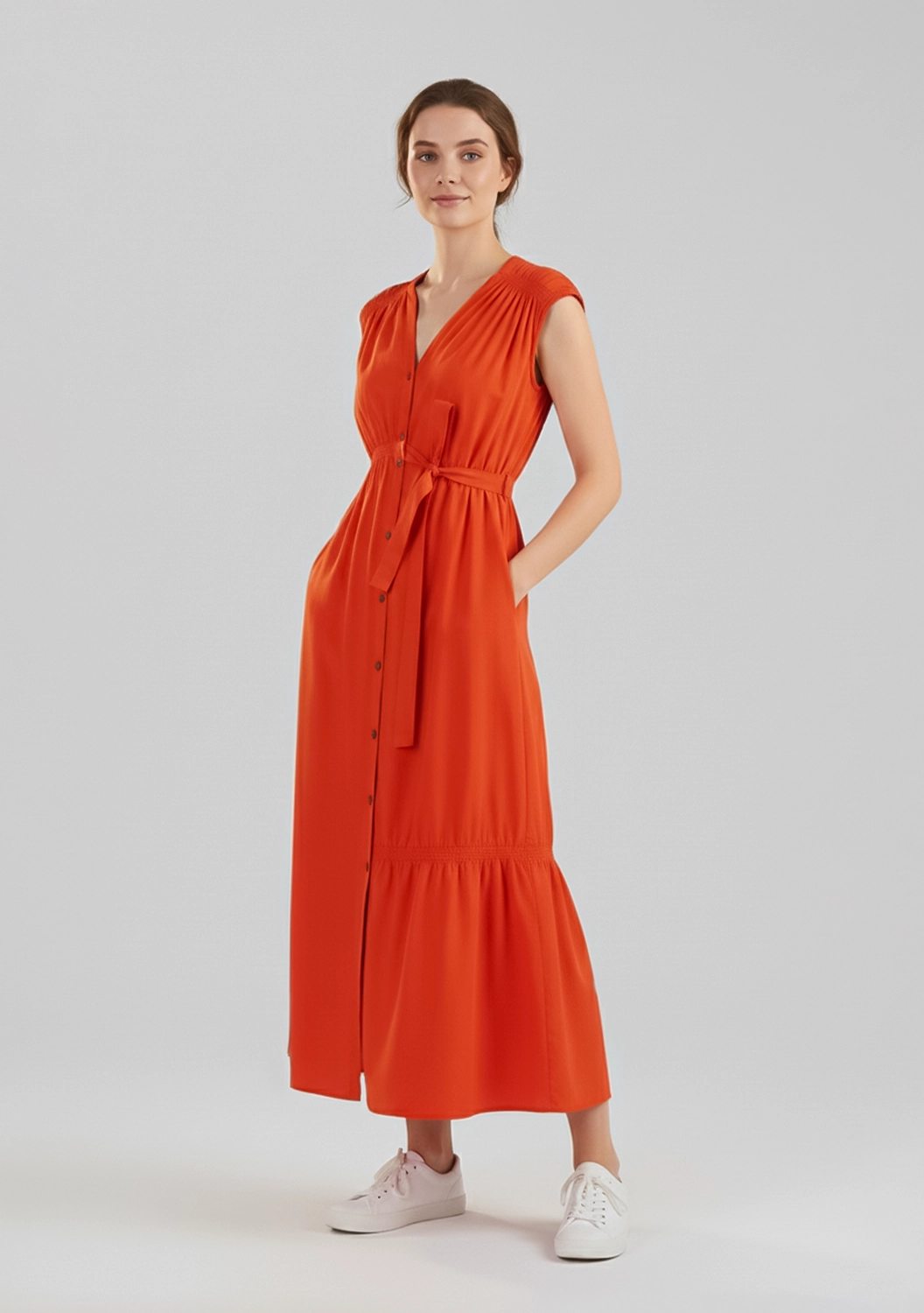 Платье CABANA — это воплощение летней легкости и яркости. Сочный цвет придает образу энергию, а мягкий хлопок приятно ложится на кожу. Приталенный крой с поясом подчеркивает силуэт, а пуговицы по всей длине добавляют нотку непринужденной элегантности. Идеальный вариант как для городской прогулки, так и для отдыха у моря.