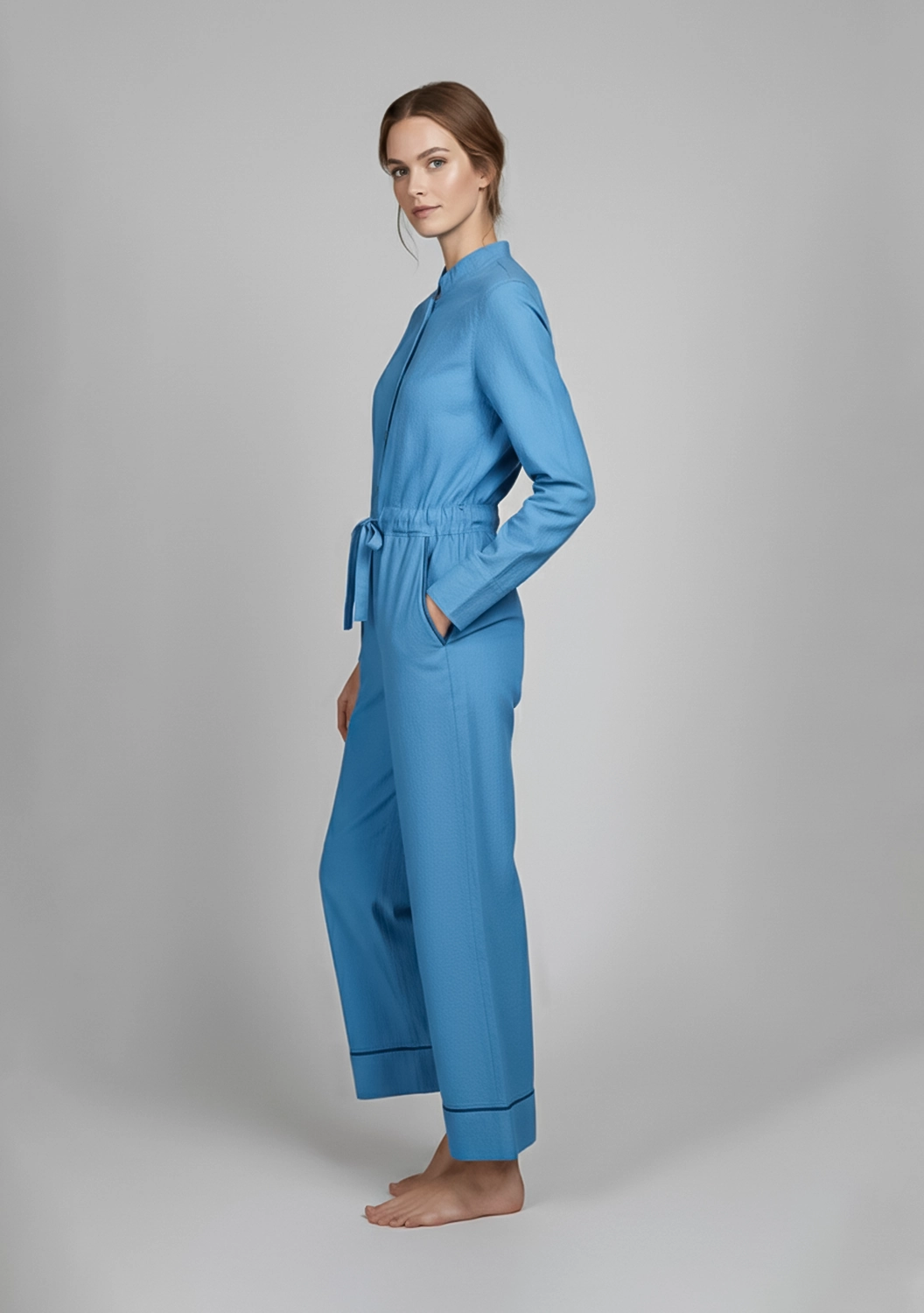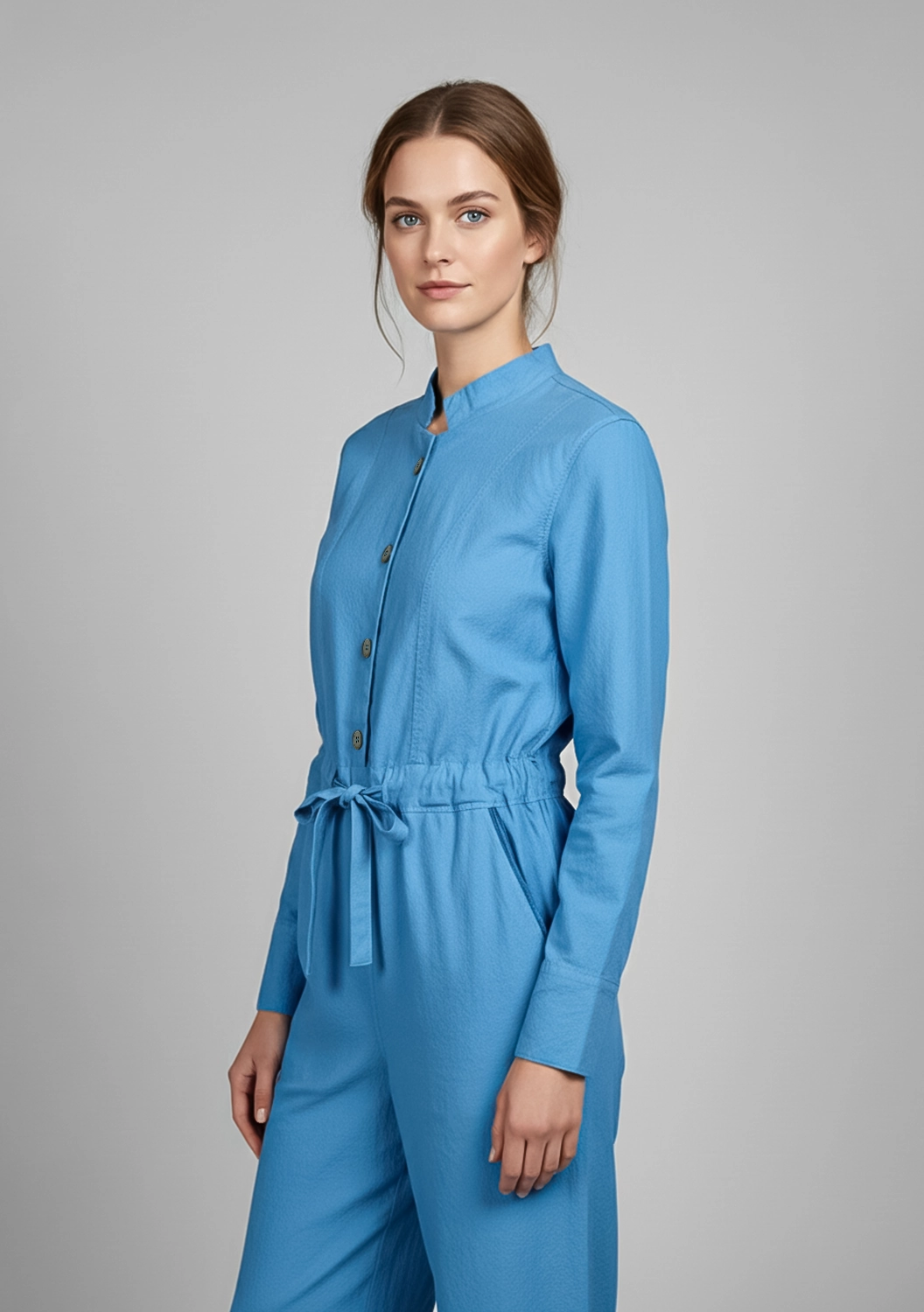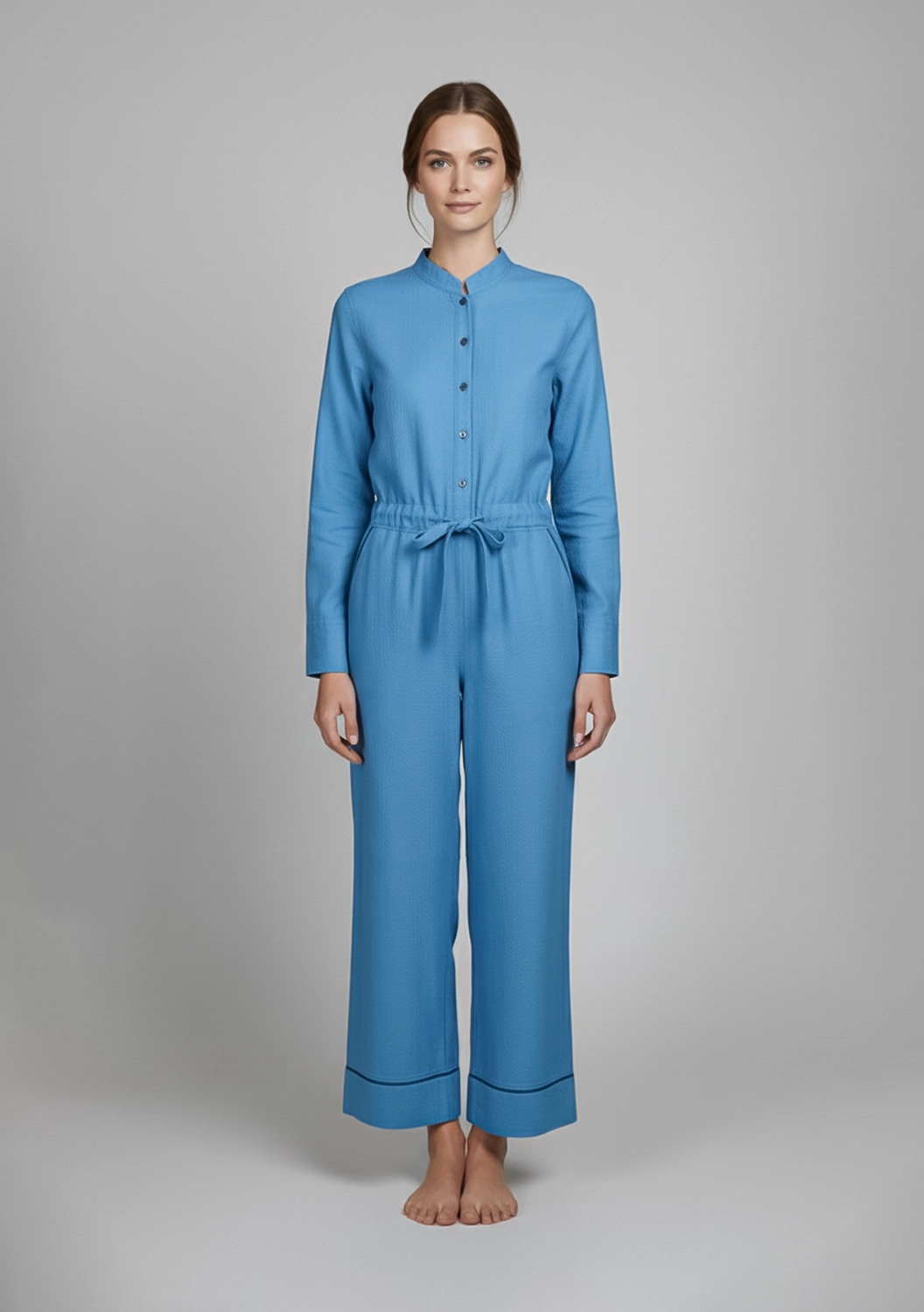 Стильный и уютный комбинезон из смеси хлопка и кашемира — идеальный выбор для повседневной носки. Свободный крой с завязкой на талии и удобными карманами обеспечивает комфорт и современный вид.